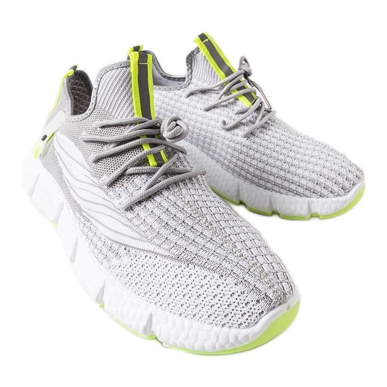 Varful rotund introduce un accent vizual unic, facand incaltamintea nu doar functionala, ci si estetica. Partea superioară gri, combinată cu talpa verde, creează un întreg armonios, iar plusul alb subliniază caracterul modern al pantofilor. Materialul exterior și inserția din material asigură confort și respirabilitate, ceea ce le face o alegere ideală pentru multe ocazii.