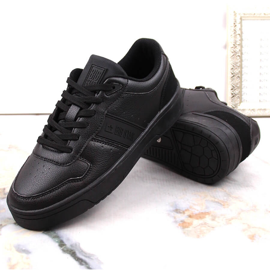 Adidașii moderni negri Big Star KK274258 sunt încălțăminte practică și elegantă creată pentru utilizarea zilnică, informală. Scăzut, cu un nas rotund și un dispozitiv de fixare la dalizare, combinați confortul cu un design atemporal - excelent în primăvară și toamnă, pentru stiluri urbane casual.