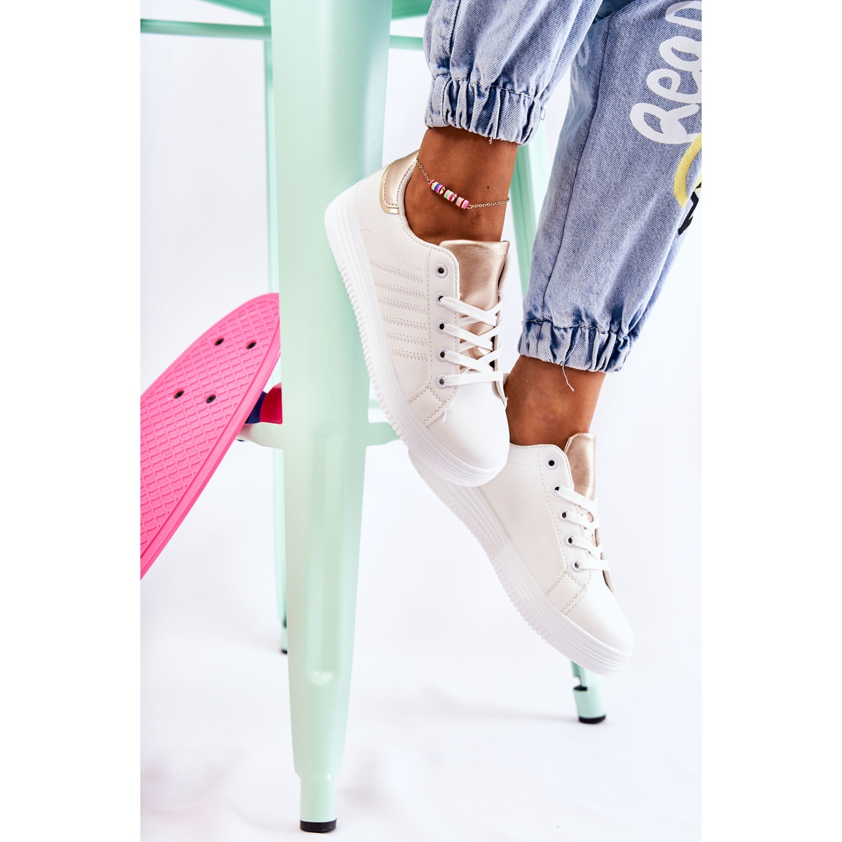 FK2 FK2 Pantofi sport albi dama Samanta de aur