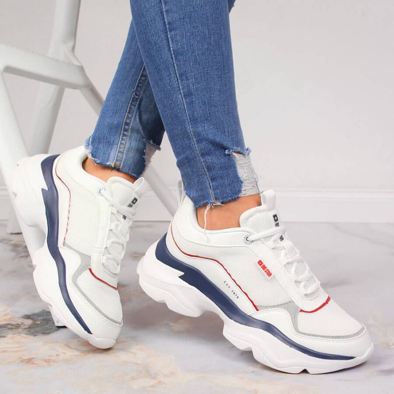 Pantofii sport Big Star W JJ274A116 în alb sunt o alegere ideală pentru toate femeile care prețuiesc stilul și confortul în fiecare zi. Aceste modele joase prinse cu șireturi sunt o alegere perfectă atât pentru stilurile casual, cât și pentru cele sportive.