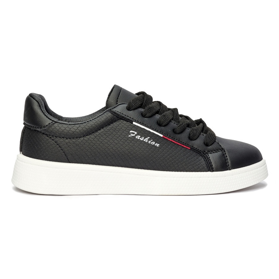 Pantofii sport negri cu o talpă albă sunt o alegere clasică, care va fi excelentă în stilizările de zi cu zi, atât în casual, cât și la modă. Perfect pentru a purta în fiecare zi, se potrivesc cu multe ținute diferite. Datorită modelului original dominant sub forma unui motiv pentru animale, acești pantofi vor atrage cu siguranță aspect.