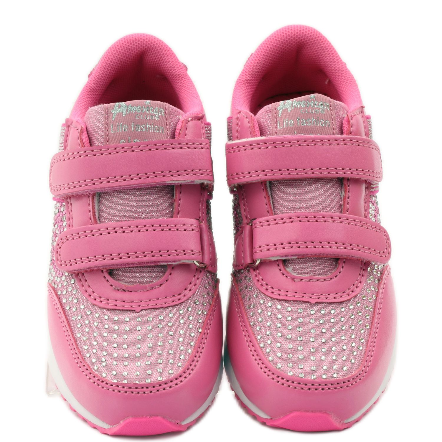 **Model de pantofi sport American Club 17326 - roz cu strasuri**