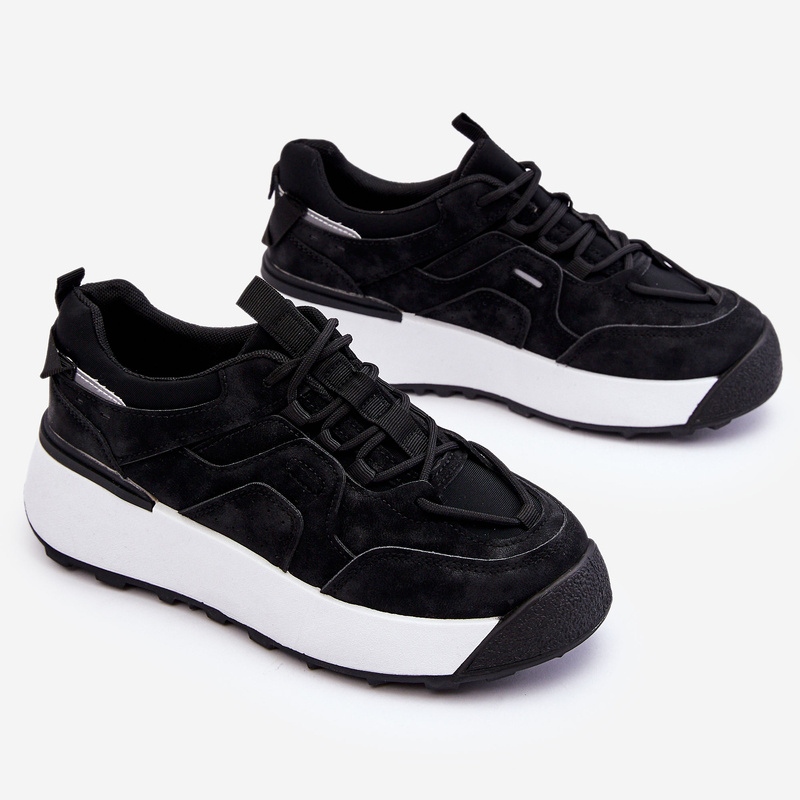 Încălțăminte sport modernă, confortabilă, pe o platformă masivă, care va sublinia stilizarea și va ridica ușor figura. Model cu o dantelă clasică, călcâie rigidizată și un element reflectorizant în spatele superior - perfect în fiecare zi în sezonul de toamnă/iarnă.