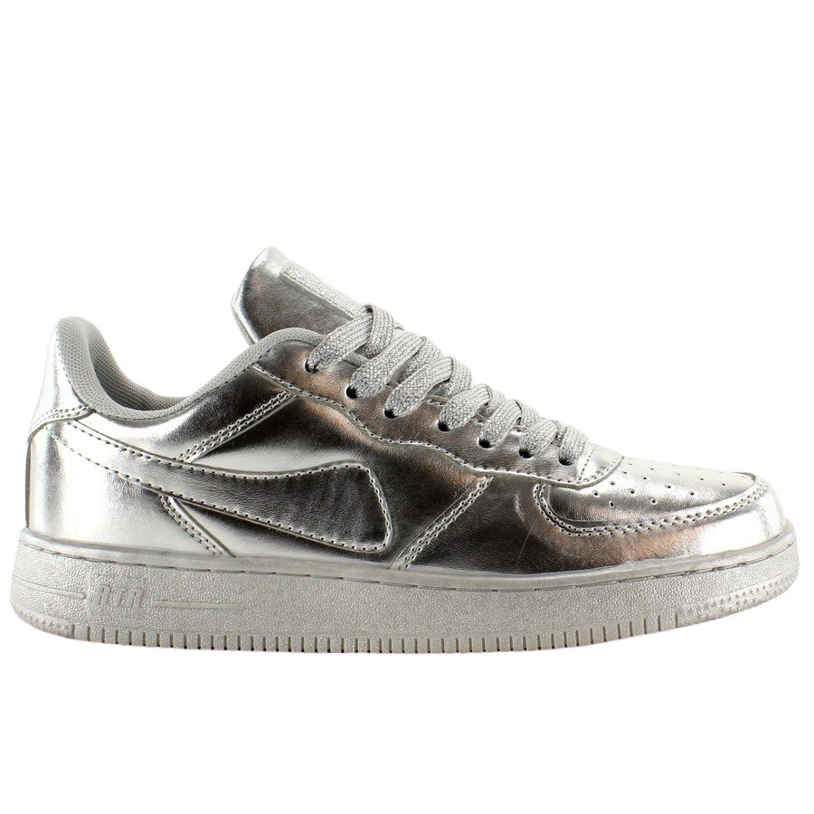 Nuanta metalica face ca pantofii sa se potriveasca cu usurinta diverselor tinute, adaugandu-le un accent modern. O talpă plată cu o înălțime de 3 cm asigură nu numai confort, ci și stabilitate la fiecare pas. Degetul rotund și închiderea cu șireturi fac ca pantofii să ofere un sprijin excelent pentru picior, ceea ce este important în timpul activității fizice.