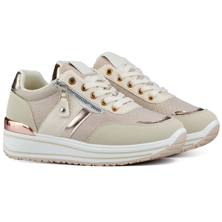 Descoperiți frumusețea și confortul de a purta datorită adidașilor de sclipici pentru femei 9053-sp-be într-o culoare bej elegantă. Acești pantofi sportivi unici sunt o combinație perfectă de design și funcționalitate la modă, perfecte atât zilnic, cât și pentru ocazii speciale.