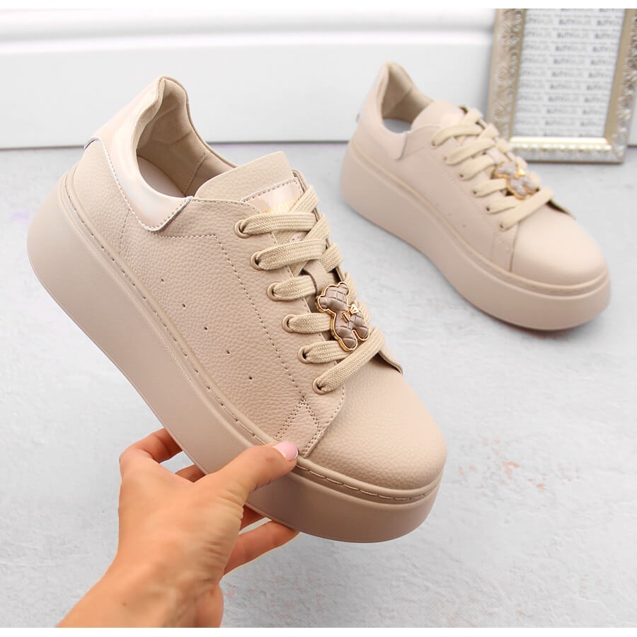 Detalii: Pantofi sport damă din piele pe platformă cu ursuleț, bej Vinceza 66641