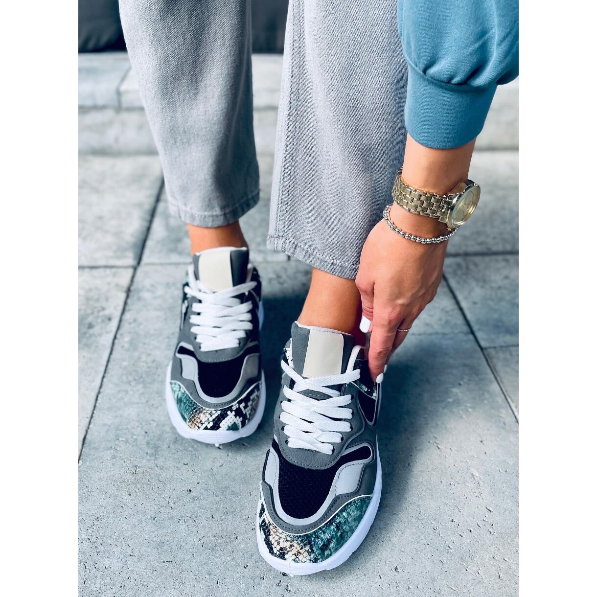 Acest model impresionează nu numai prin designul său unic, ci și prin calitatea înaltă a manoperei. Inserțiile atrăgătoare cu motive din piele de șarpe și elementele de plasă vor face din fiecare pas o declarație de modă. Interiorul pantofilor este căptușit cu material moale, ceea ce mărește confortul de utilizare, iar talpa plată înaltă de 3 cm este perfectă pentru plimbări lungi sau antrenamente intense.