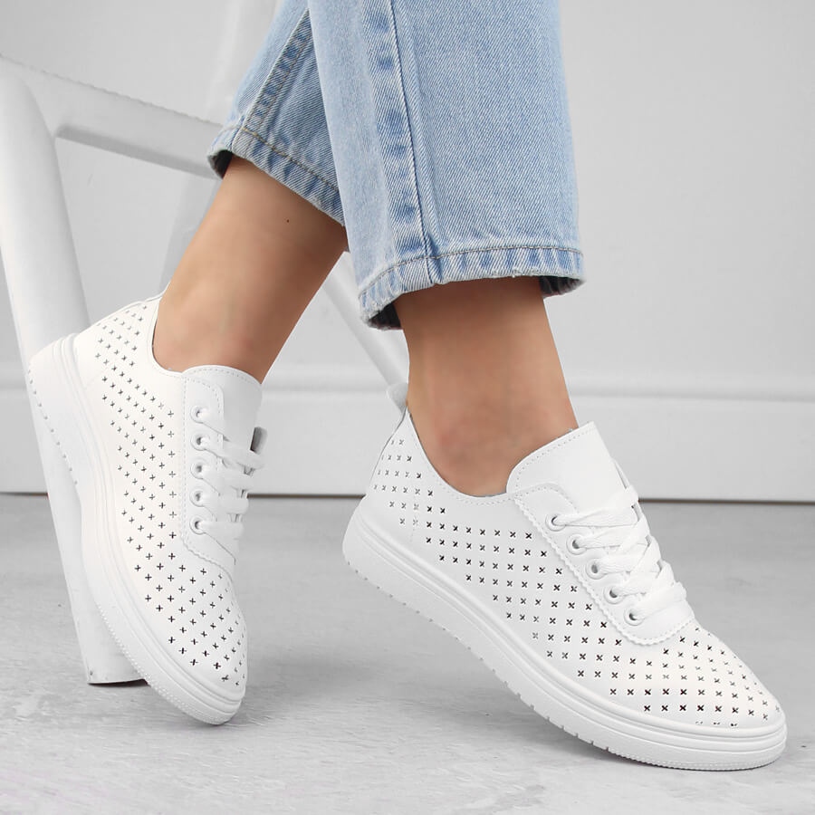 Sabatina Pantofi sport de dama ajurati, alb Sabatina 0819