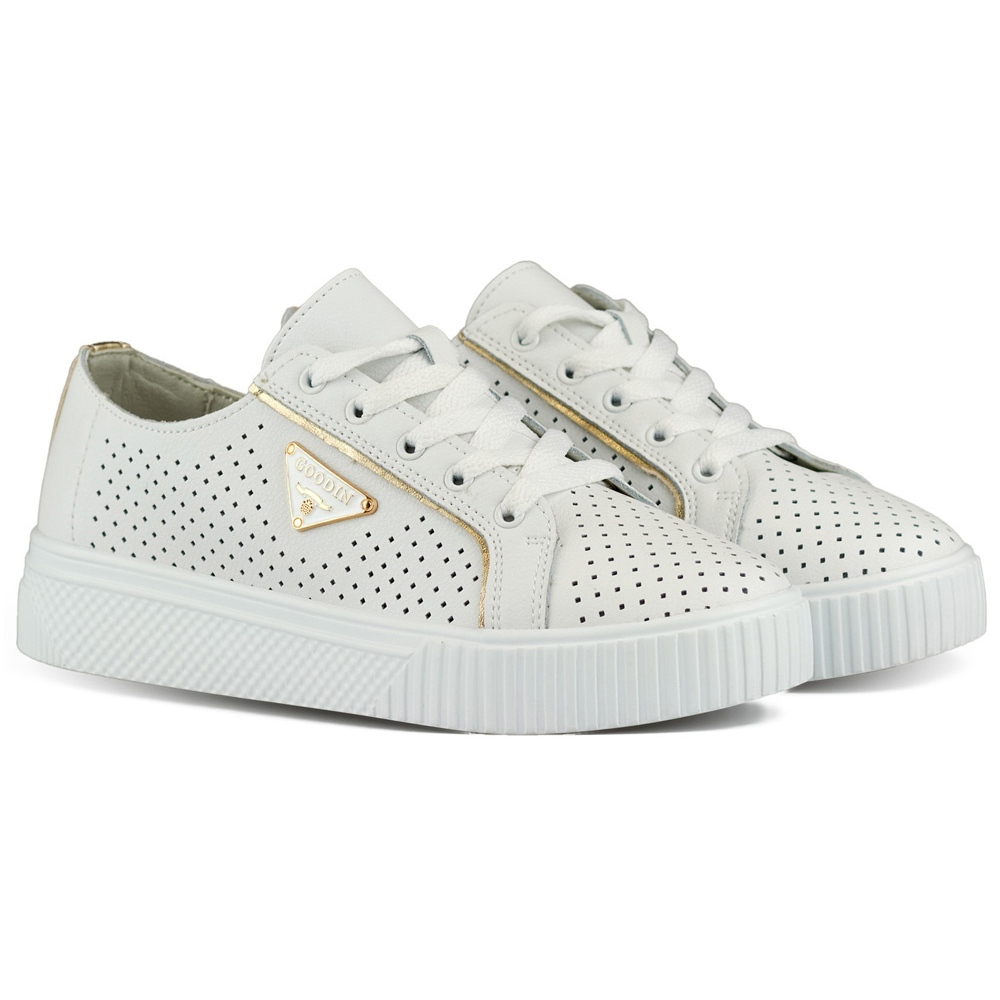 Detalii: Pantofi sport de dama albi ajurati din piele naturala