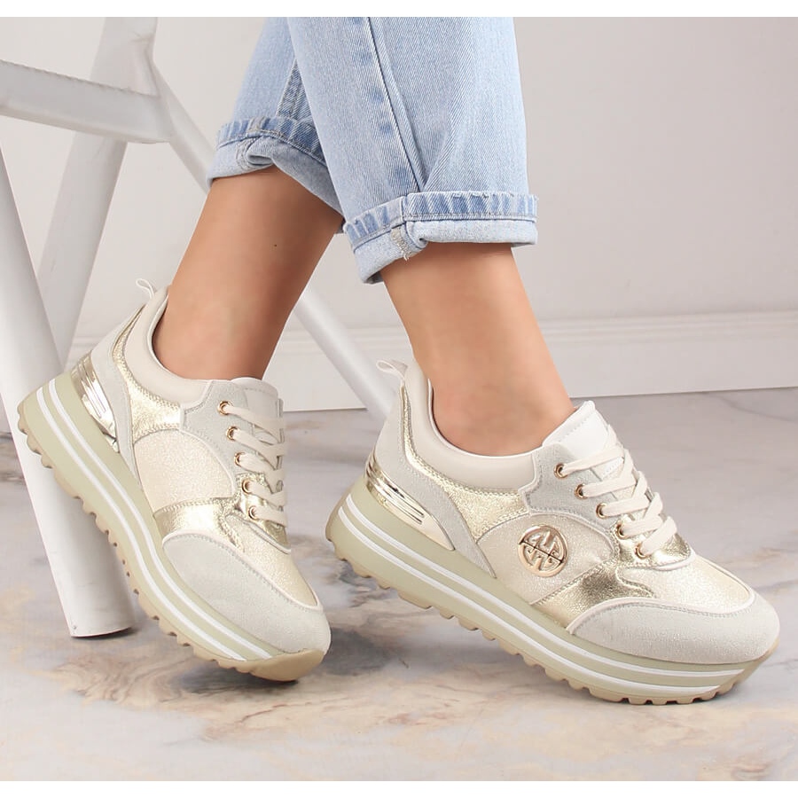 Detalii: Pantofi sport de damă pe platforma aurie Potocki SZ12025 de aur