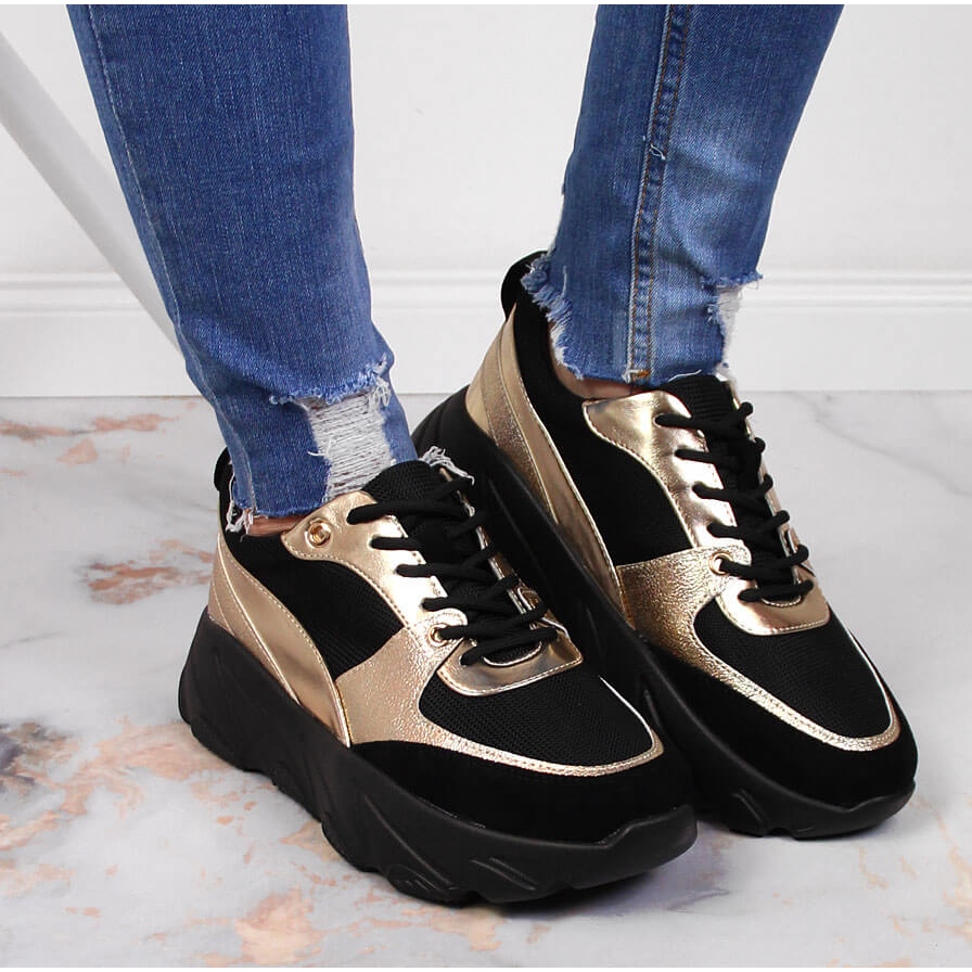 Detalii: Pantofi sport de damă pe platforma Potocki negru de aur