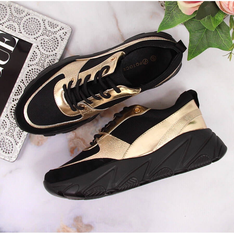 POTOCKI Pantofi sport de damă pe platforma Potocki negru de aur