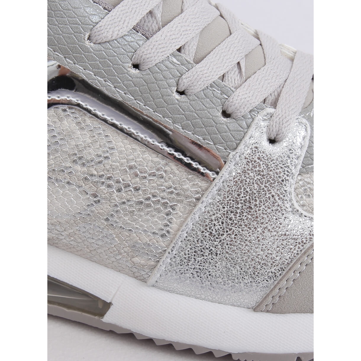 Descoperiți stil și confort extraordinar cu pantofii sport de damă argintii BL206 Silver. Acești adidași cu șireturi sunt combinația perfectă de clasice și tendințe moderne care cu siguranță vor atrage atenția. Se disting printr-o talpă translucidă și inserții metalice la modă și o textură asemănătoare cu pielea de șarpe, ceea ce le face un hit absolut în fiecare garderobă.