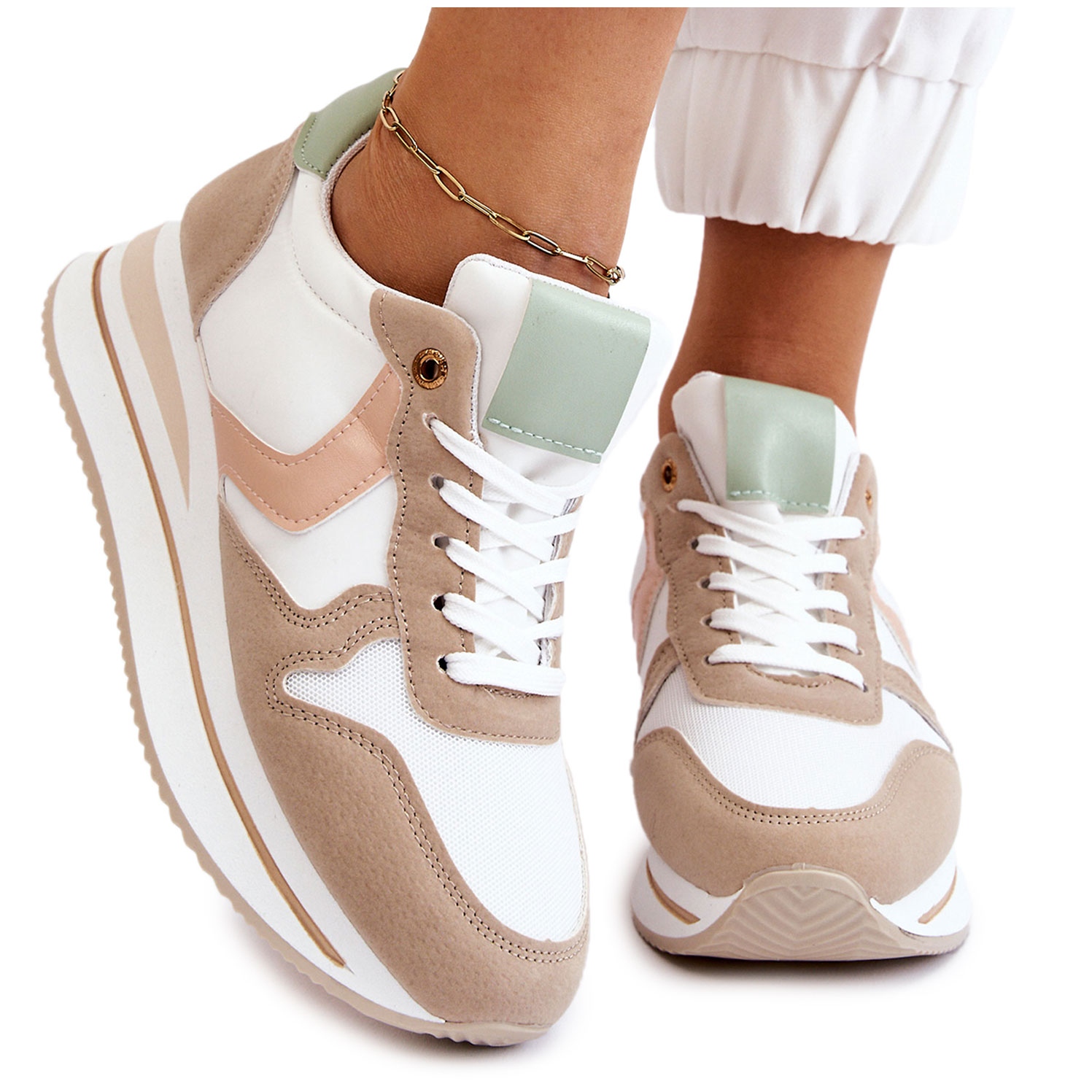 Pantofii sport cu pană PG1 Neva de damă în alb și bej sunt alegerea perfectă pentru femeile care prețuiesc stilul și confortul. Realizați dintr-o combinație de material textil, piele de căprioară ecologică și piele ecologică, acești adidași arată elegant și modern.