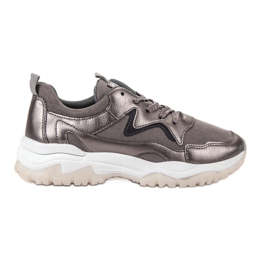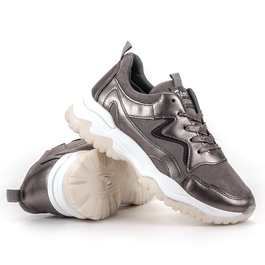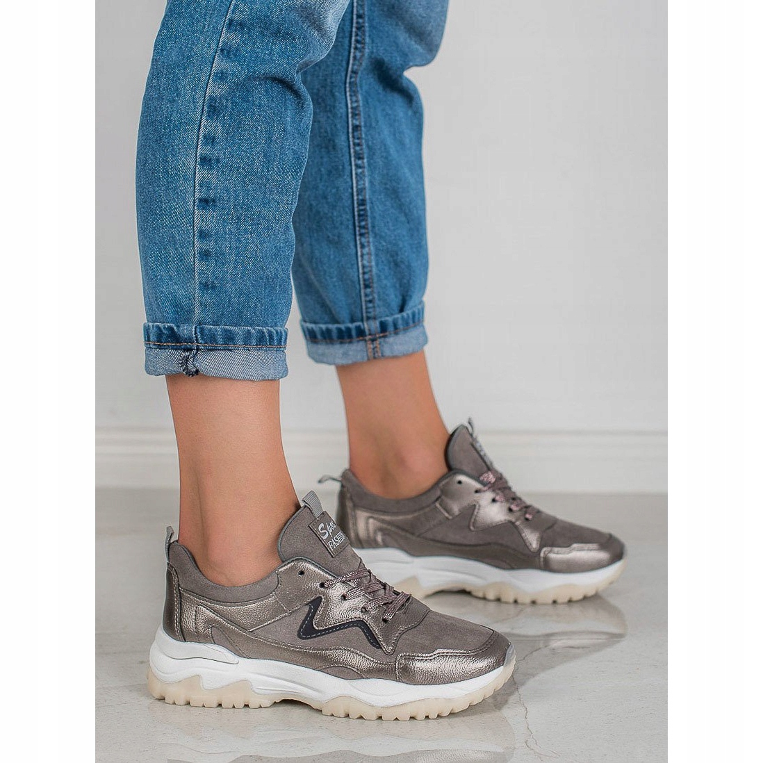 Pantofii sunt fabricați din materiale de înaltă calitate, care garantează nu numai un aspect atractiv, ci și durabilitate. Culoarea lor gri este o propunere universală care se potrivește cu ușurință în diferite stiluri. Accentele metalice suplimentare și un model cu sclipici le conferă un caracter la modă și modern.