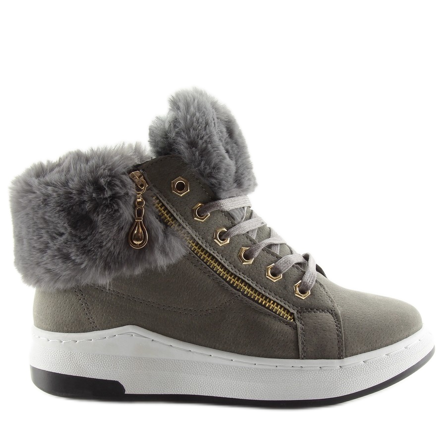 Pantofii sport izolați gri 16-529 gri sunt alegerea perfectă pentru femeile care doresc să îmbine confortul cu un aspect la modă. Acești adidași stilați se remarcă prin blana originală așezată de-a lungul gleznei, care le oferă un pic de căldură și eleganță, rupând caracterul sportiv al încălțămintei. Un avantaj suplimentar este fermoarul auriu, care conferă pantofilor un design unic și modern.