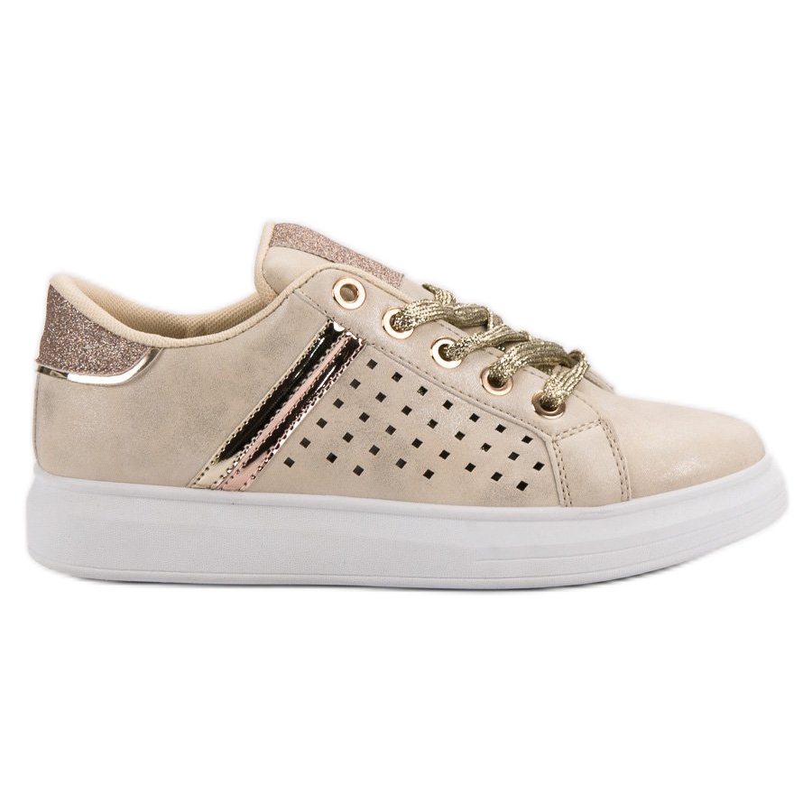 Descoperiți moda și confortul într-una cu pantofii noștri sport eleganti, maro! Acești încălțăminte într-o nuanță delicată de bej cu accente aurii unice sunt alegerea perfectă pentru femeile care doresc să iasă în evidență din mulțime. Conceput având în vedere originalitatea, acest model arată grozav pe picioarele tale, subliniind orice stil.