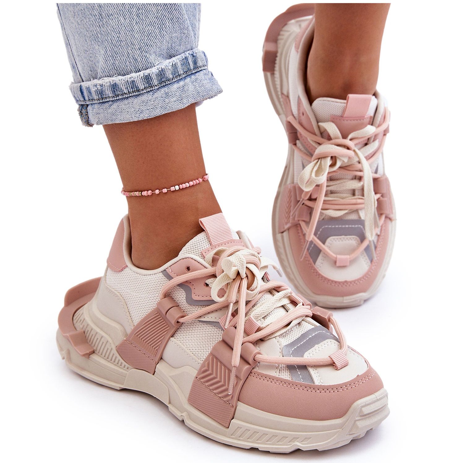 Detalii: PS1 Pantofi sport la modă pentru femei, cu șireturi, bej-roz Chillout!