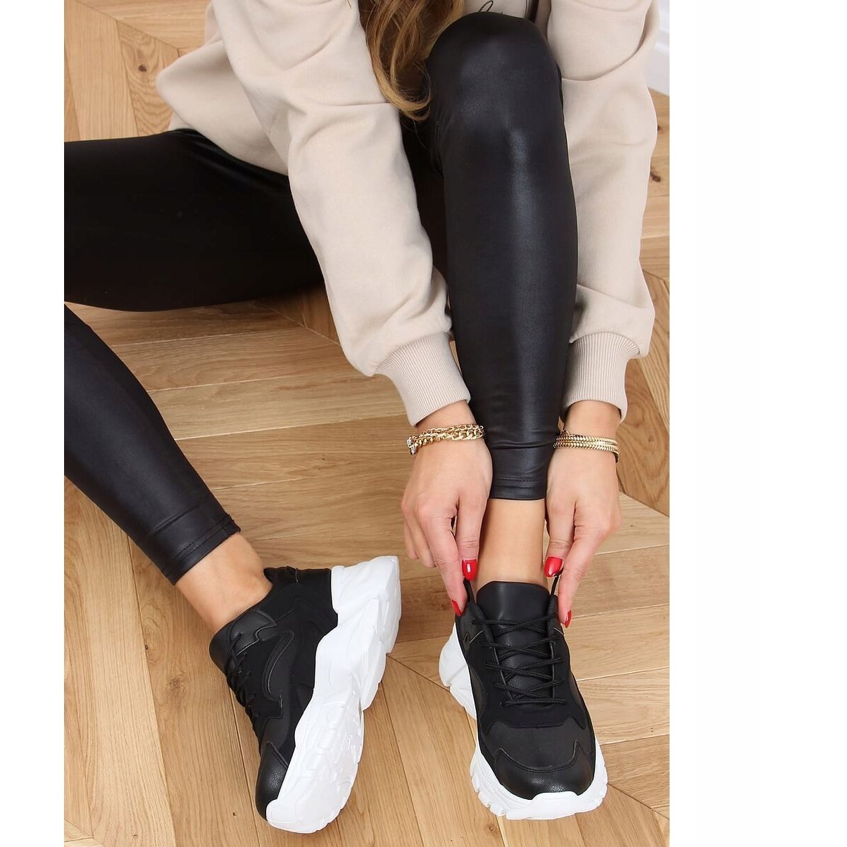 Descoperiți încălțămintea sport neagră unică YL-45 Black, care îmbină perfect moda cu confortul. Acești pantofi sport cu șireturi pentru femei sunt alegerea perfectă pentru utilizarea de zi cu zi și în timpul antrenamentului. Datorita talpii inalte si combinatiei originale de piele intoarsa ecologica si piele ecologica, acest model arata extrem de stilat.
