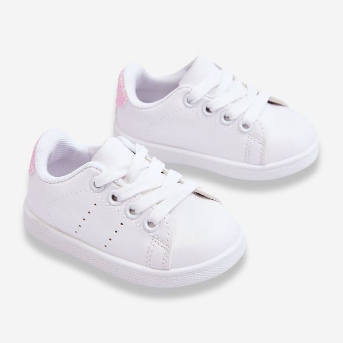 Detalii: FR1 Pantofi sport pentru copii alb și roz lucios