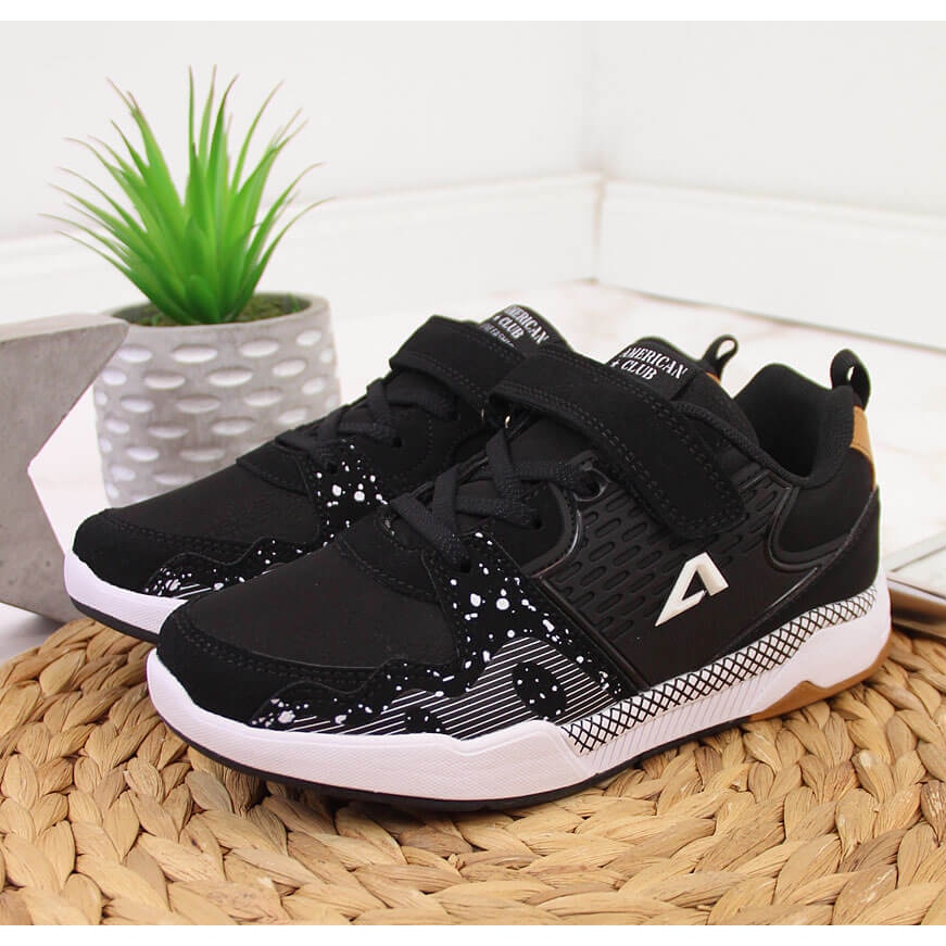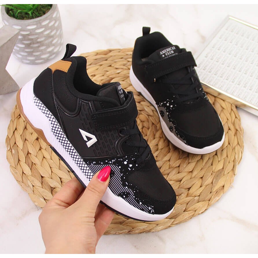 American Club Pantofi sport pentru copii Black American Club cu velcro negru