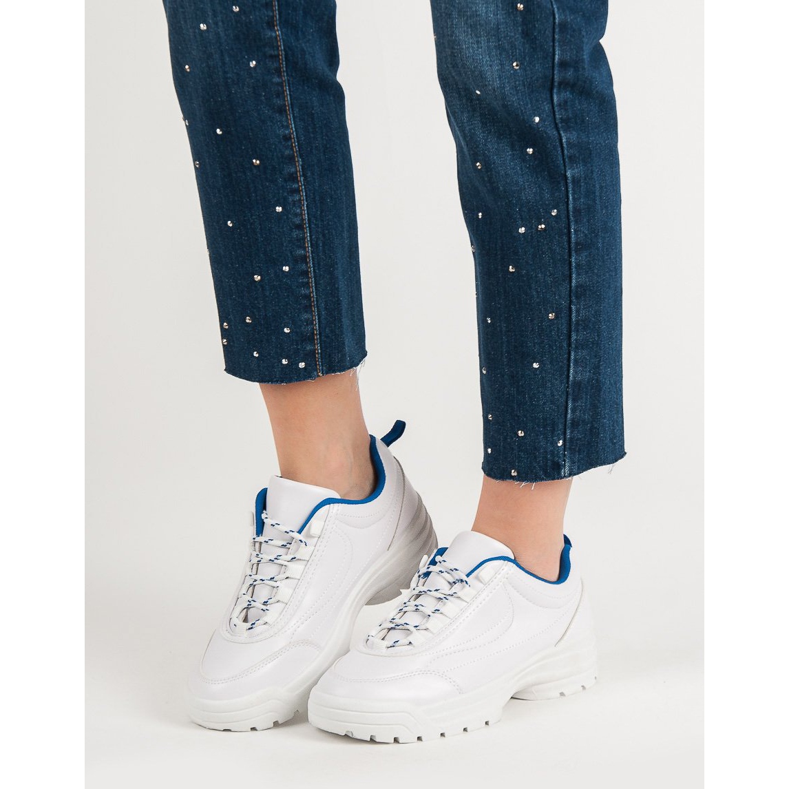 Acești pantofi, albi cu elemente bleumarin, creează o compoziție unică, care cu siguranță va atrage atenția. Perfecti pentru primavara, vara, precum si toamna si iarna, vor fi o alegere excelenta pentru fiecare zi. Materialele de înaltă calitate, cum ar fi talpa sintetică și țesătura branțului, asigură durabilitate și confort la purtare.
