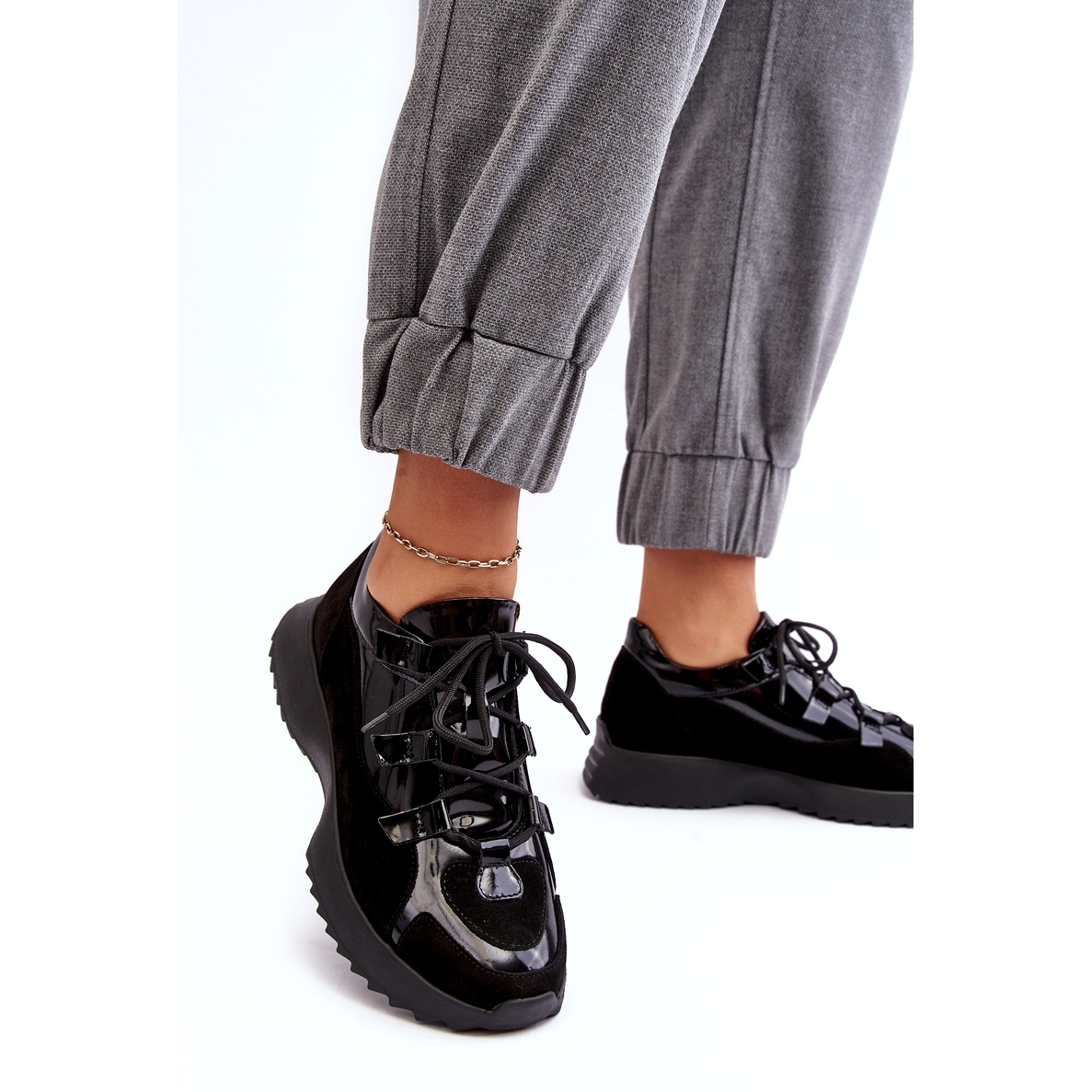 Detalii: Pantofi sport pentru femei lăcuite din piele M01/2 Zazoo Black negru
