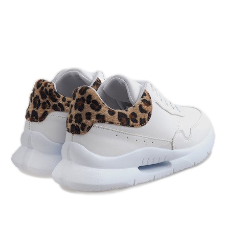 Confecționate din material asemănător pielii de înaltă calitate, acești pantofi au o culoare albă elegantă, care poate fi ușor potrivită cu o varietate de haine. Inserția decorativă cu pete de animale le adaugă caracter, ceea ce înseamnă că pot fi purtate cu succes ca element de stiluri care subliniază individualitatea.
