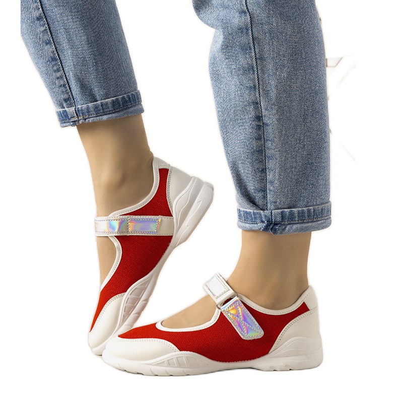 Pantofi sport roșu și alb cu inserție holografică Melania roşu