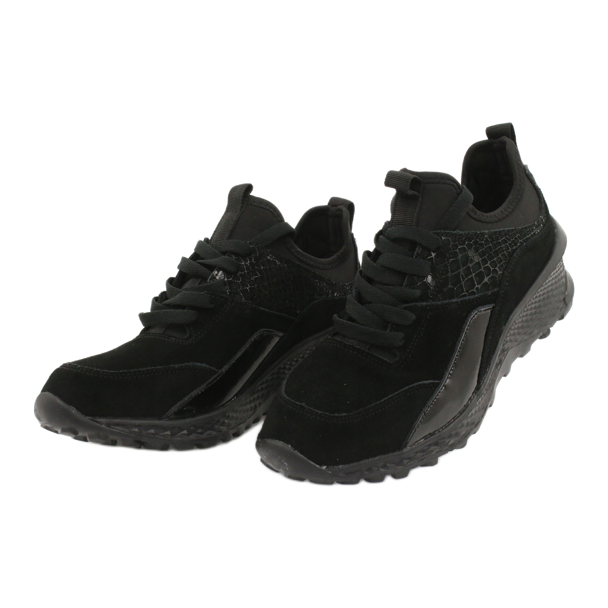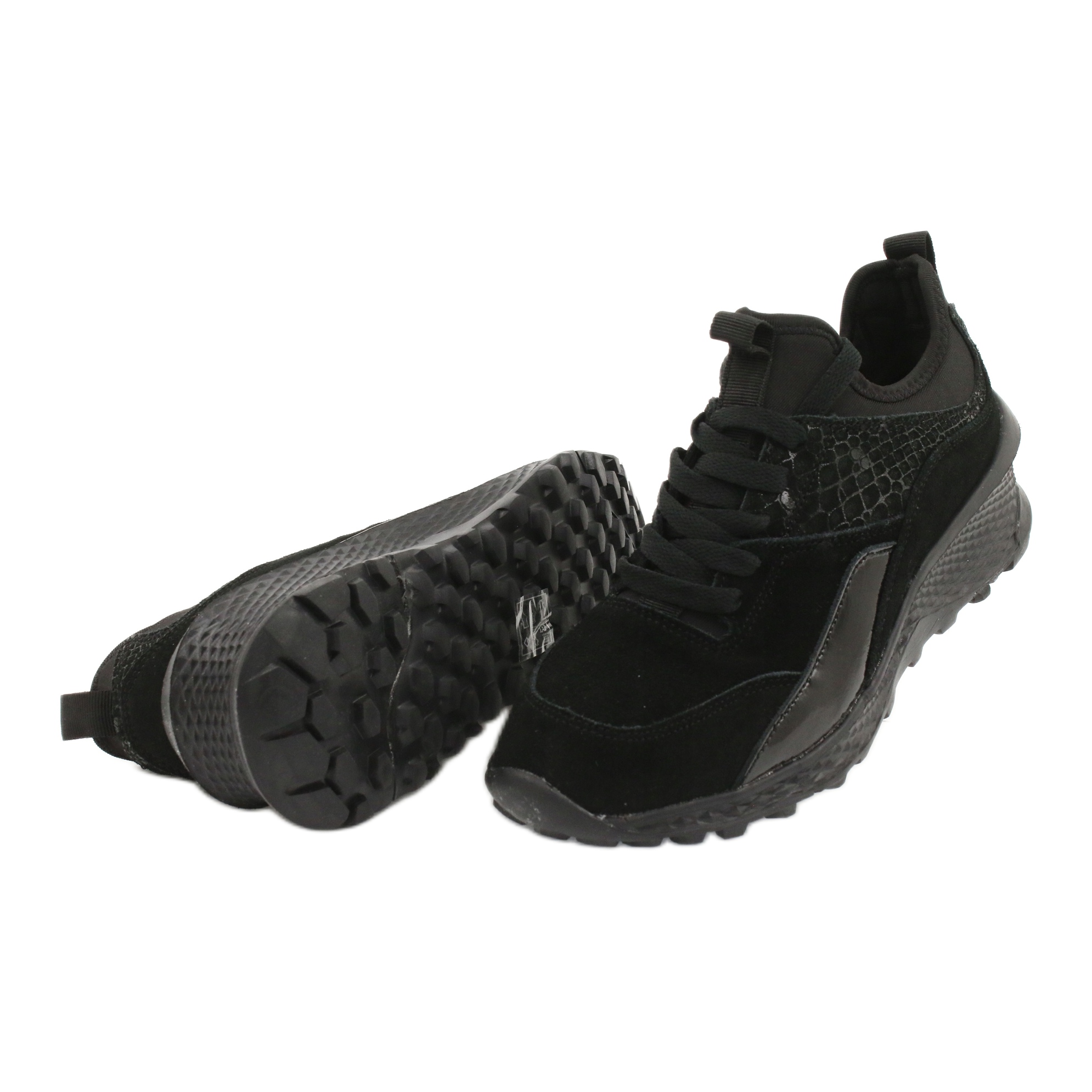 Propunerea ușoară, elegantă pentru vară - Scatons Black Filippo, combinând un personaj sportiv cu confortul încălțămintei de zi cu zi. Partea de sus este din piele naturală din piele de căprioară, interiorul este căptușit cu material textil plăcut, iar inserția de piele cucerită cu un burete moale garantează confort chiar și în timpul plimbărilor mai lungi. Modelul este încorporat pe o talpă delicată de spumă EVA, cu o creștere în aproximativ 5 cm în spate, ceea ce adaugă o ușurință subtilă figurii.