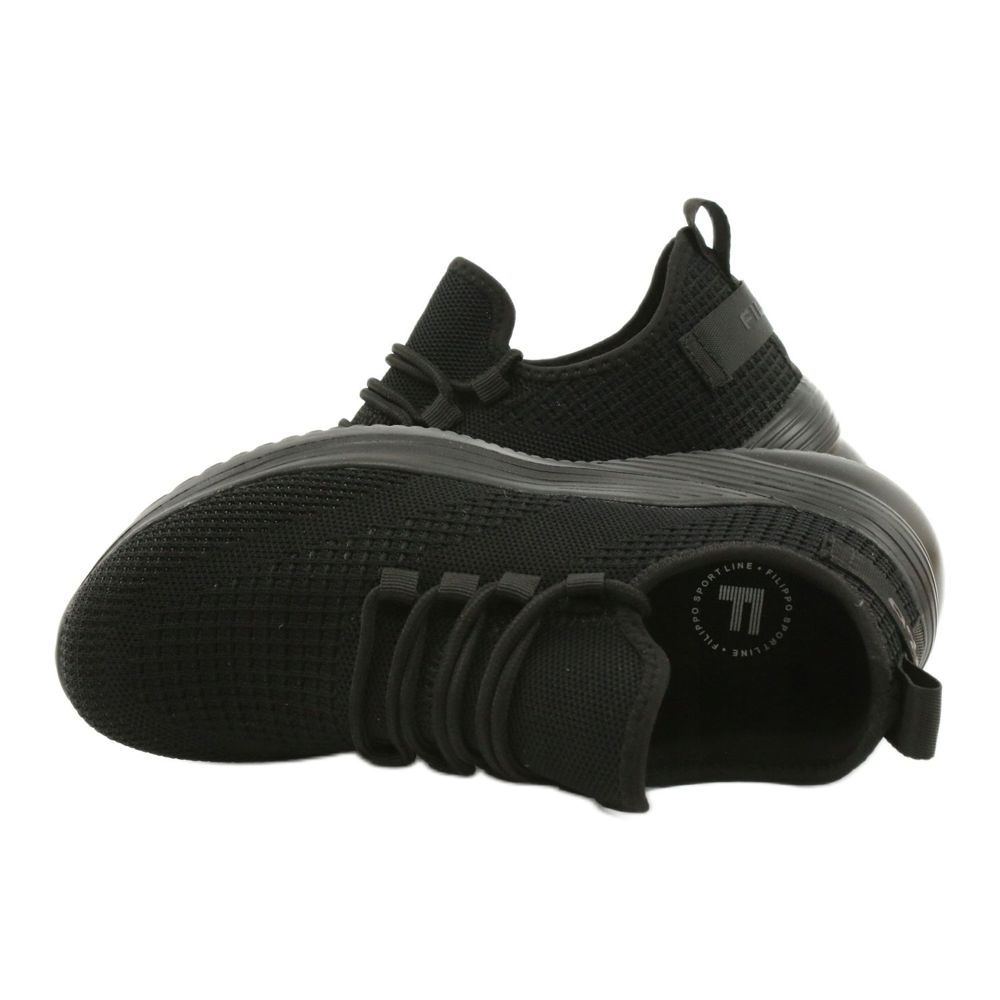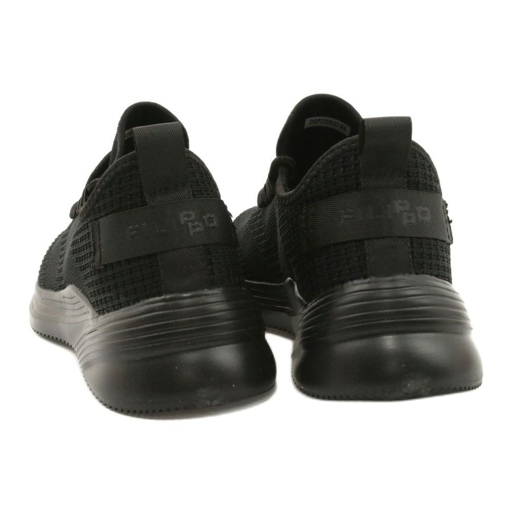 Scapele pentru femei Filippo DSP2299/21 - încălțăminte sportivă neagră, confortabilă și universală, perfectă pentru vară. Designul elegant, minimalist, le face perfecte atât pentru stilizări de zi cu zi, cât și pentru o plimbare sau ieșiri mai scurte. Partea superioară și căptușeala sunt confecționate din material textil moale, ceea ce asigură o ventilație bună și purtând confort.