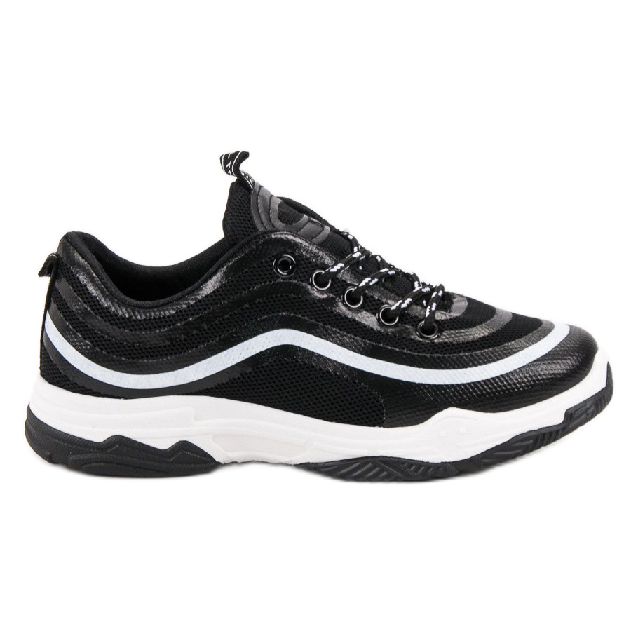 Pantofii sport negri cu talpa groasa nu numai ca vor adauga stil, dar iti vor si subtirea optic silueta. Datorită tocurilor moi, încorporate și unei platforme confortabile de 3,5 cm înălțime, te vei simți încrezător și confortabil toată ziua, indiferent dacă mergi la antrenament, la o plimbare sau la o întâlnire cu prietenii.