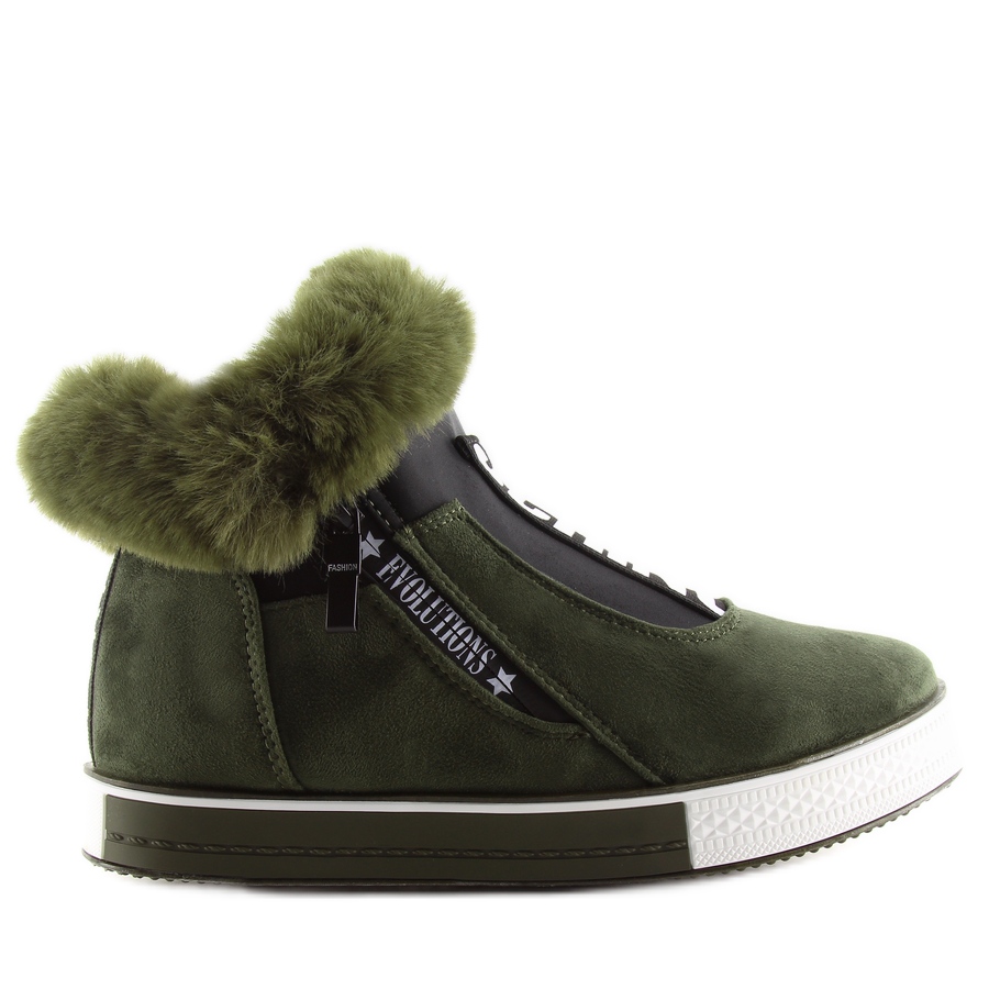 Pantofii sport izolați verde Nb128P Army sunt o alegere perfectă pentru zilele mai reci. Realizate din piele intoarsa ecologica de inalta calitate, aceste botine stilate nu numai ca arata atractiv, dar ofera si confort si caldura. Interiorul pantofilor este căptușit cu blană groasă, ceea ce îi face un companion ideal pentru călătoriile de iarnă.