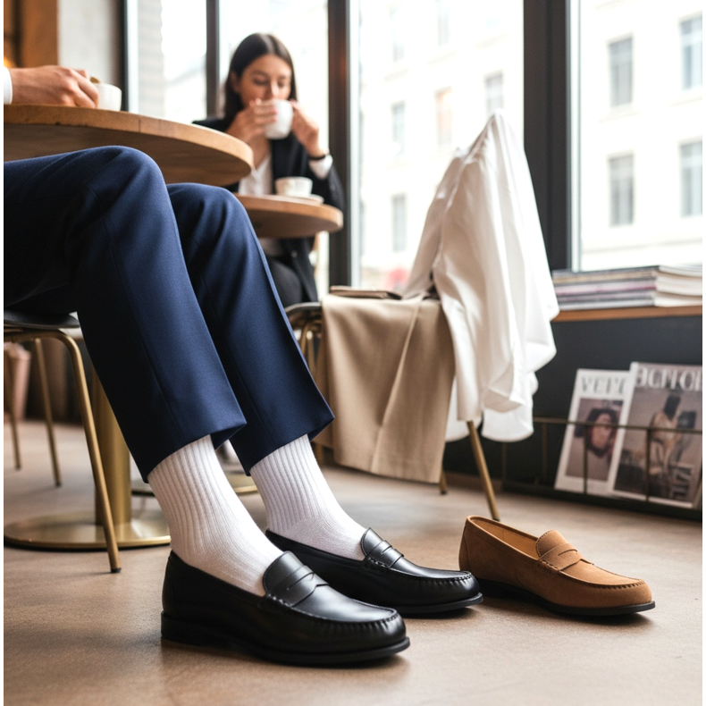 A cincea și cea mai versatilă pereche de dulapuri capsule sunt mocasinii. Acest stil, derivat din tradiția modei preppy și academice, se confruntă cu o adevărată renaștere a popularității în 2026. Mocasinii clasici din piele se potrivesc la fel de bine cu ținuta office și cu o ținută casual de weekend.