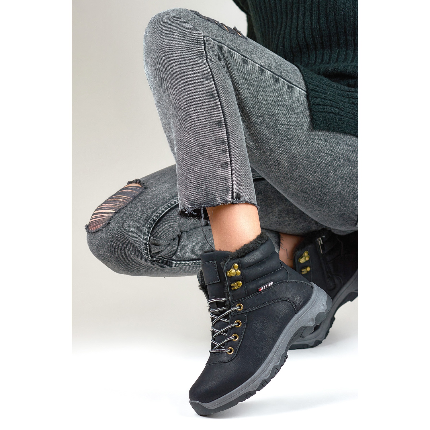 Pantofi de trekking dedicati femeilor active pentru sezonul de toamna si iarna. Căptușeala lor solidă este confecționată din piele ecologică durabilă, asigurând nu numai durabilitate, ci și rezistență la condițiile meteorologice în schimbare. Cu o înălțime a arborelui de 10 cm, acești pantofi oferă suportul și stabilitatea necesare în drumeții sau drumeții pe o varietate de terenuri. Interiorul pantofilor este căptușit cu blană ecologică plăcută, care nu numai că oferă confort, ci și te încălzește eficient în zilele mai reci. Izolația cu blană le face o alegere excelentă pentru aventurile de iarnă în aer liber, protejându-ți picioarele de frig și umezeală. Șiretul pantofilor permite o ajustare precisă la forma piciorului, ceea ce afectează confortul și ținerea în siguranță a piciorului în pantof. Degetul rotund asigură poziționarea naturală a degetelor, ceea ce este important în timpul purtării pe termen lung, în special în timpul activităților solicitante în aer liber. Finisajul negru conferă pantofilor un aspect universal și modern, făcându-i să se potrivească perfect atât cu stilurile urbane, cât și să servească drept încălțăminte solidă de trekking. Acești pantofi combină funcționalitatea, confortul și stilul, îndeplinind așteptările femeilor active de zi cu zi.
