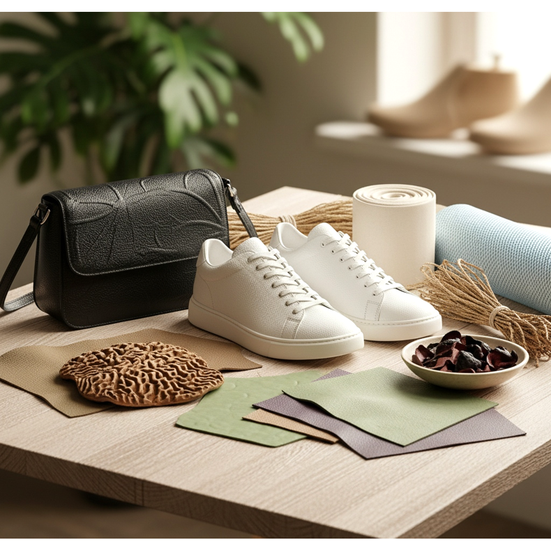 Materialele vegetale joacă, de asemenea, un rol din ce în ce mai important. Pielea din frunze de ananas (Piñatex) câștigă recunoaștere în rândul designerilor din întreaga lume. În mod similar, pielea din miceliu de miceliu, cactusul (marca Desserto) sau pielea de struguri (deșeuri de la vinificație) sunt exemple de soluții creative și durabile. Aceste materiale nu sunt doar prietenoase cu animalele, ci și cu mediul înconjurător, deoarece se bazează adesea pe deșeuri agricole.