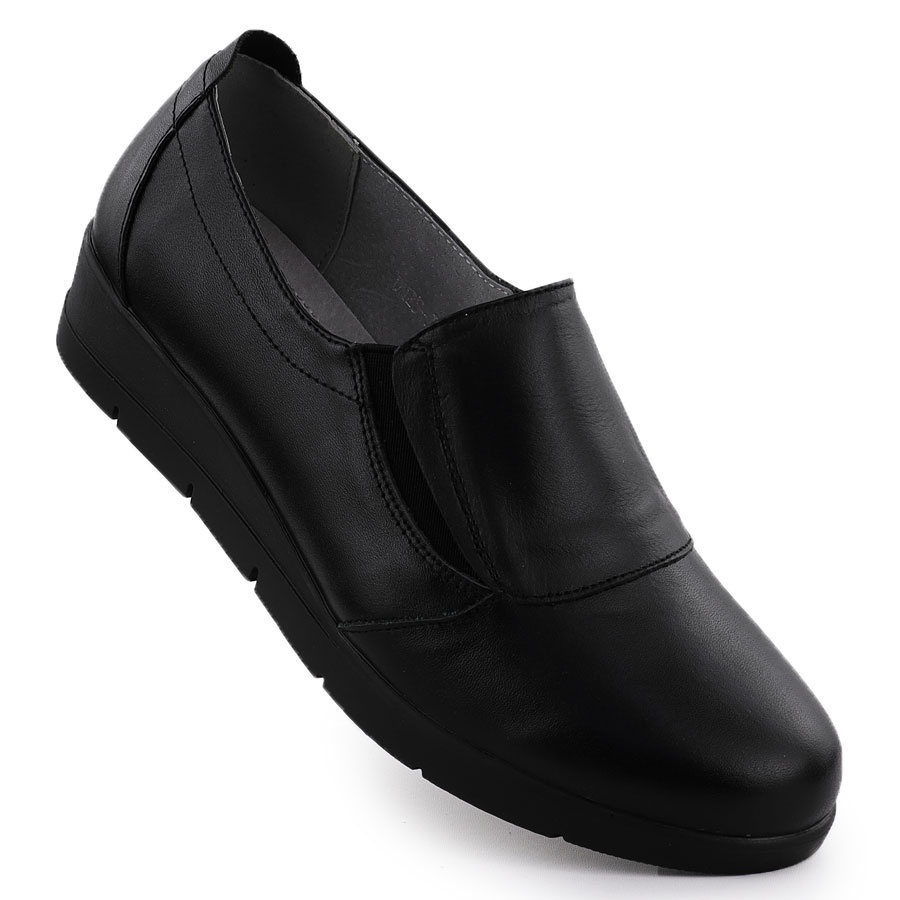 Detalii: Pantofii de piele pentru femei pe panouri alunecate SABATINA JHY203 negru