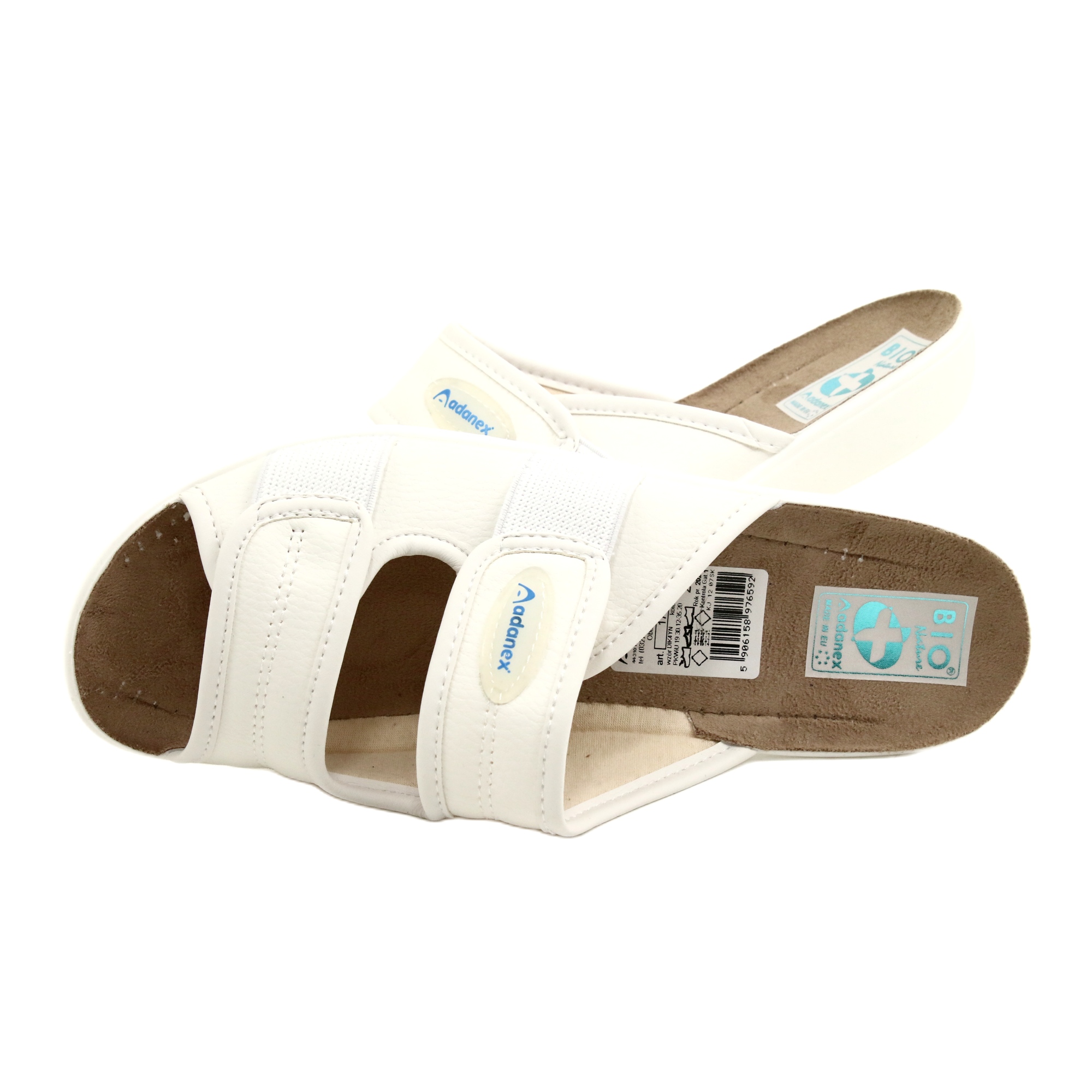 Slapii Adanex Diana oferiti din colectia BIO Nature sunt o combinatie de eleganta, confort si tehnologii moderne. Confectionate din piele ecologica, sunt o alegere excelenta pentru femeile care apreciaza confortul si estetica. Culoarea lor clasică albă cu bretele elastice le face să se potrivească perfect în diverse stiluri și, în același timp, sunt practice pentru utilizarea de zi cu zi.