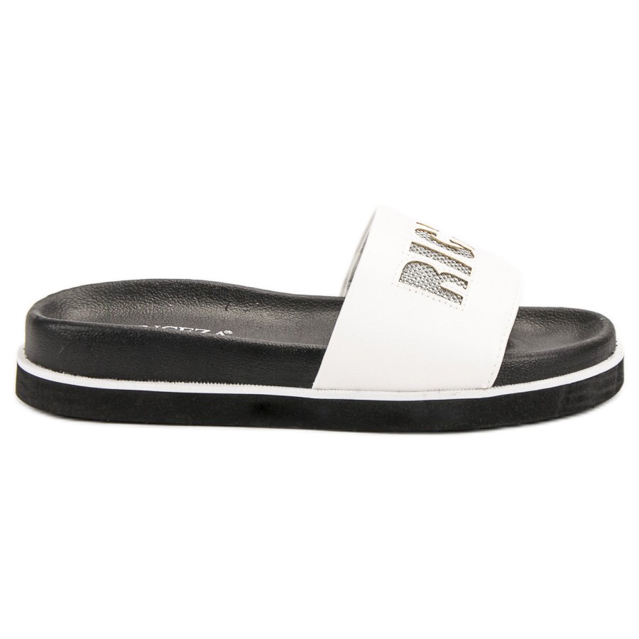 Pregătește-te pentru vara viitoare cu șlapi masivi de la Vinceza, care vor deveni un element inseparabil al garderobei tale de vacanță. Culoarea lor minimalistă, albă, se combină perfect cu diverse stiluri, iar inscripția „BOGAT” adaugă caracter și originalitate.