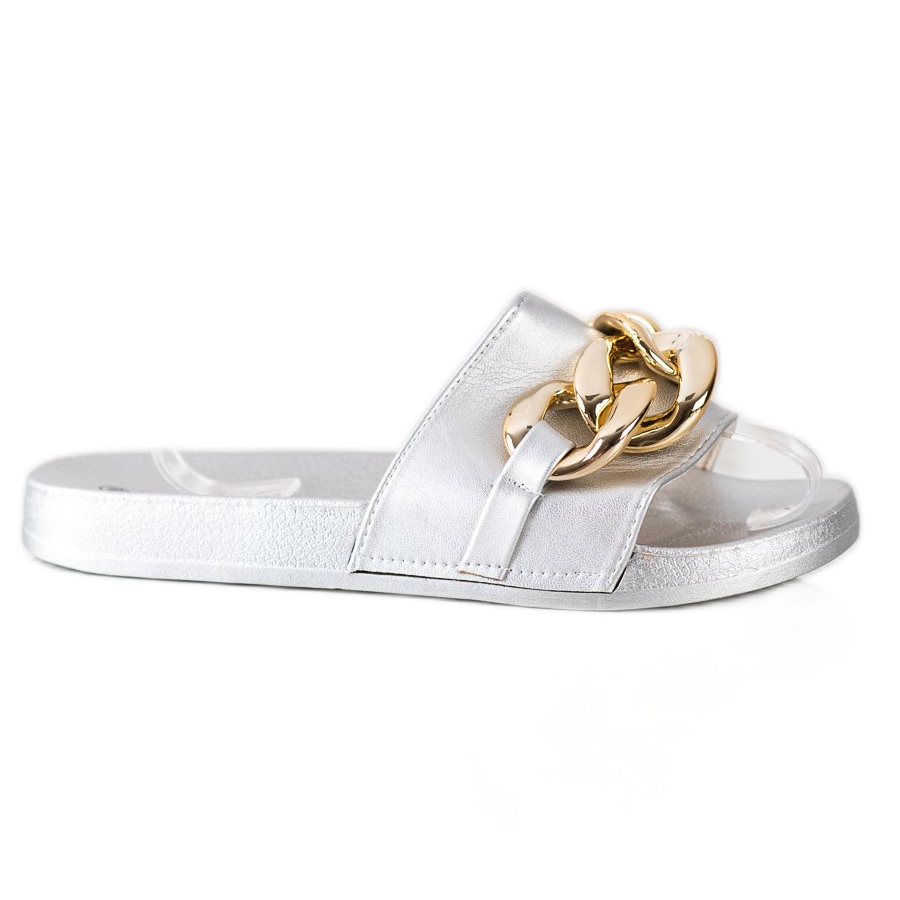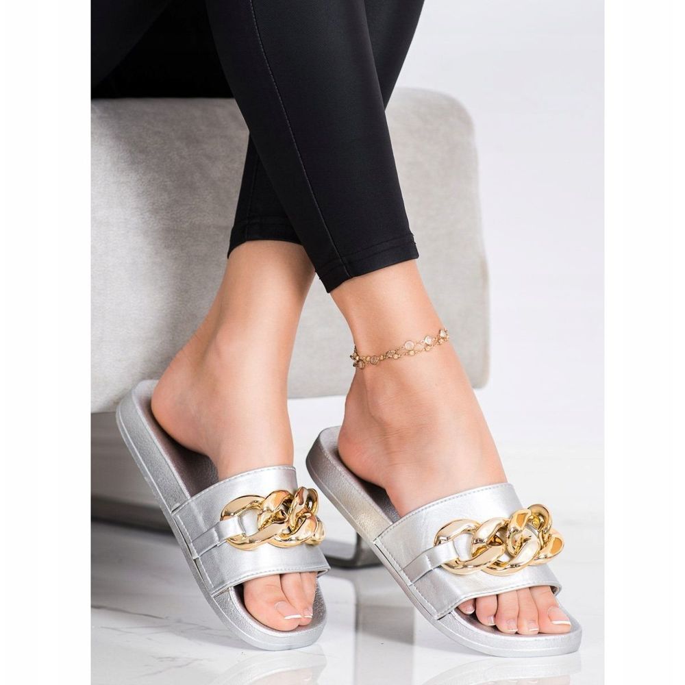 **Șlapi SHELOVET argintii cu decor**