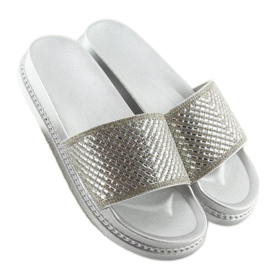 Detalii: Papuci argintii cu zirconiu cubic Argint 966 gri