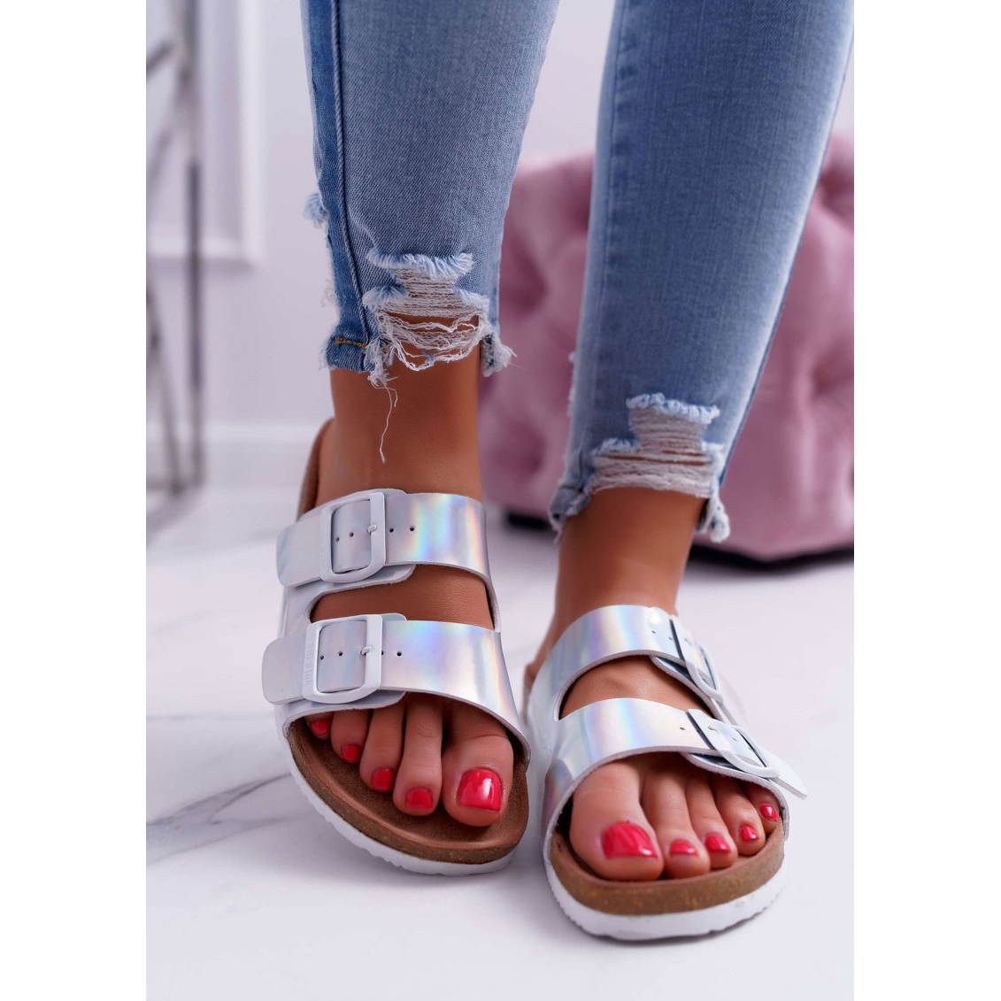 Detalii: Papuci argintii dama Big Star DD274134 gri