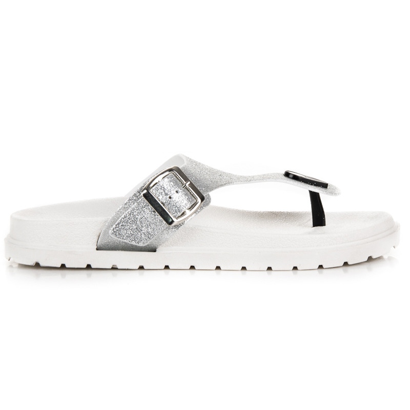 Descoperiți confortul și stilul cu șlapii argintii Vinceza într-o culoare gri elegantă. Acești șlapi de damă sunt alegerea perfectă de zi cu zi, combinând un caracter casual cu detalii la modă. Fabricate din materiale de înaltă calitate, asigură confortul la purtare, iar platforma lor de 2,5 centimetri adaugă o creștere subtilă, asigurând în același timp stabilitatea.