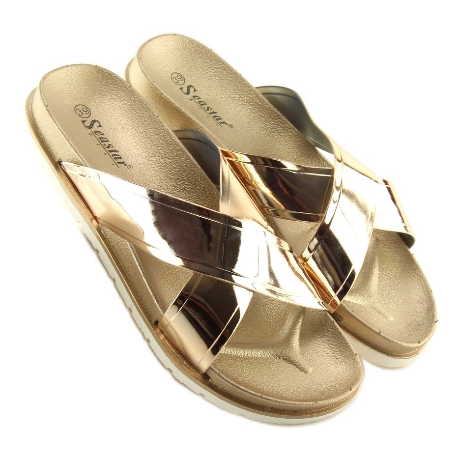 Detalii: Papuci aurii aspect oglindă CK46P aurii de aur