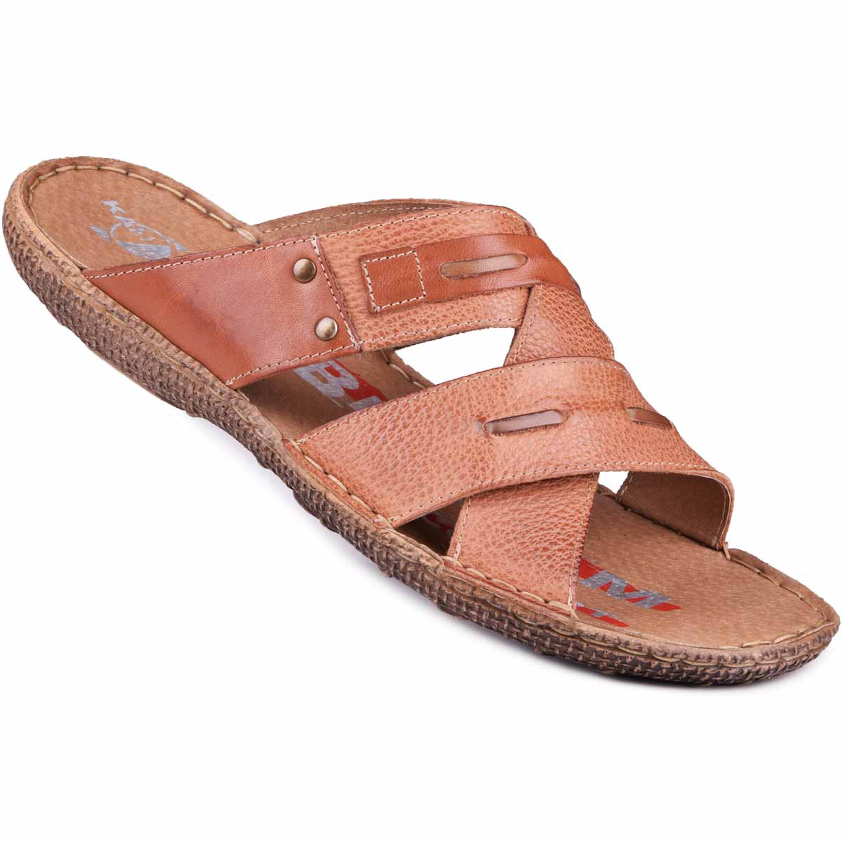 Kampol Kampol Papuci bărbați din piele 201 / C3 maro