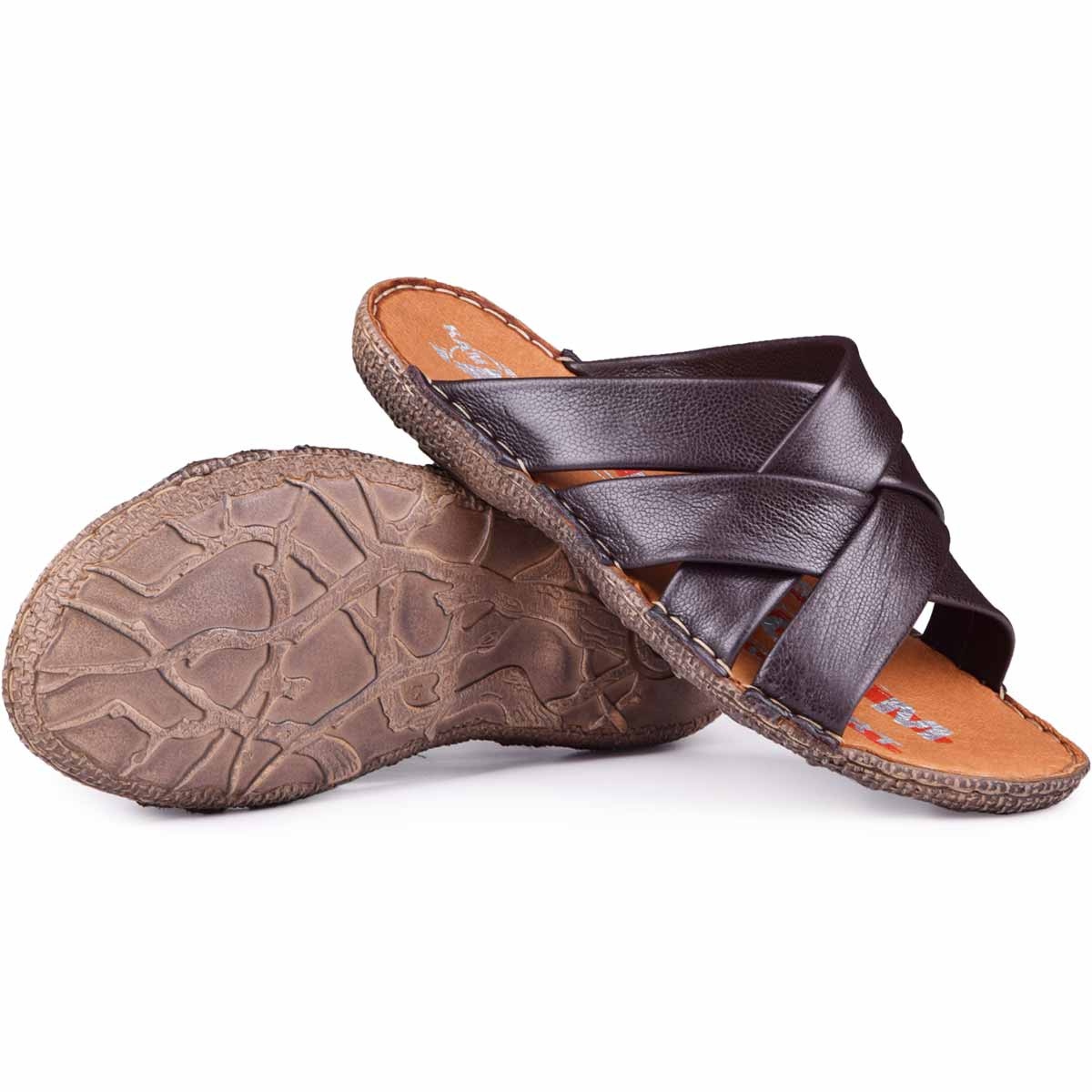 Papuci din piele pentru bărbați Kampol 214/Br - maro