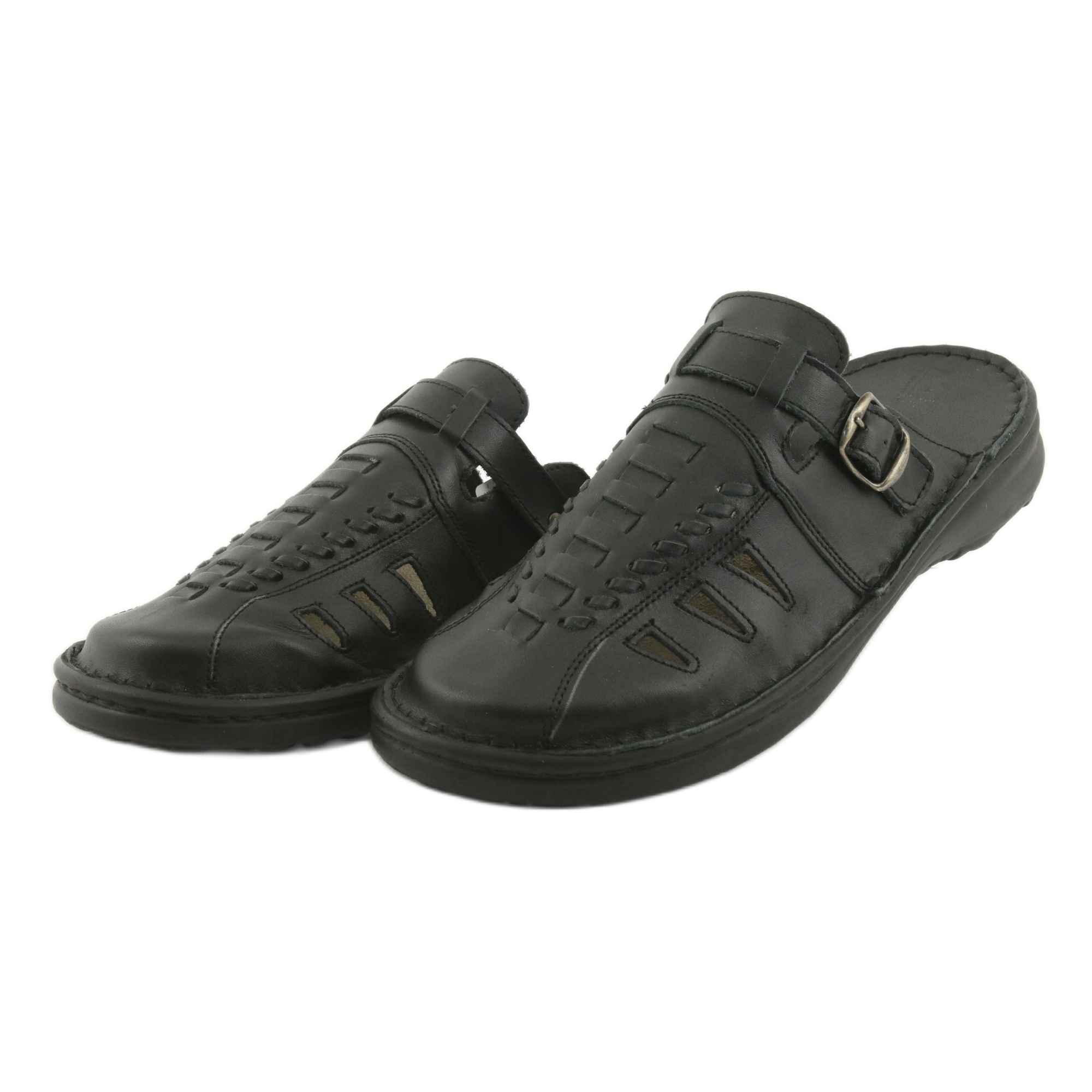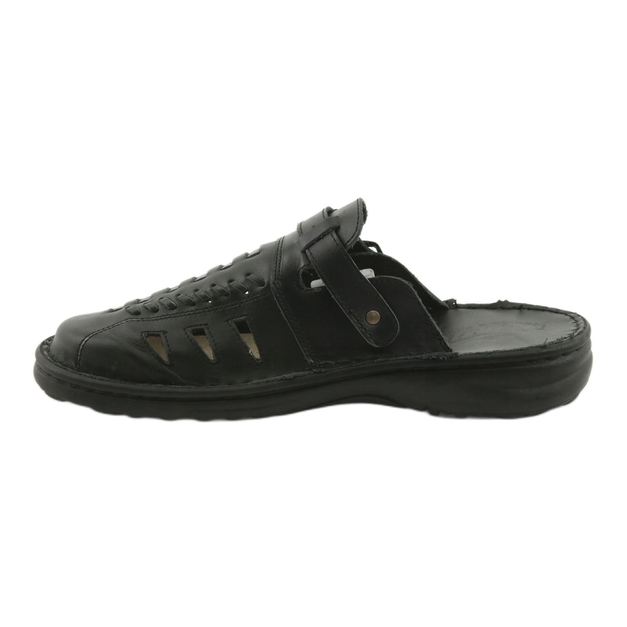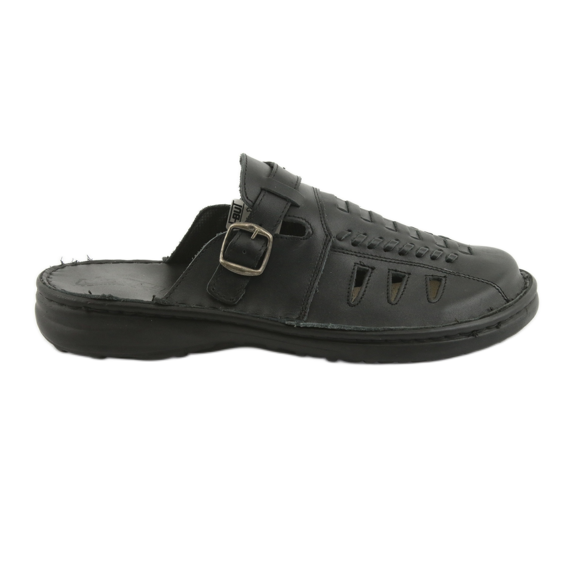 Flip-flops pentru bărbați Naszbut 044 în negru sunt o alegere perfectă pentru bărbații care apreciază confortul și stilul. Realizați în întregime din piele naturală, acești șlapi oferă o ventilație și un confort excelent, perfect pentru zilele calde. Brantul din piele moale absoarbe orice denivelare a solului, ceea ce face ca fiecare pas sa fie o placere.
