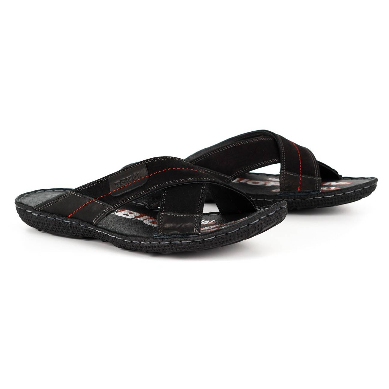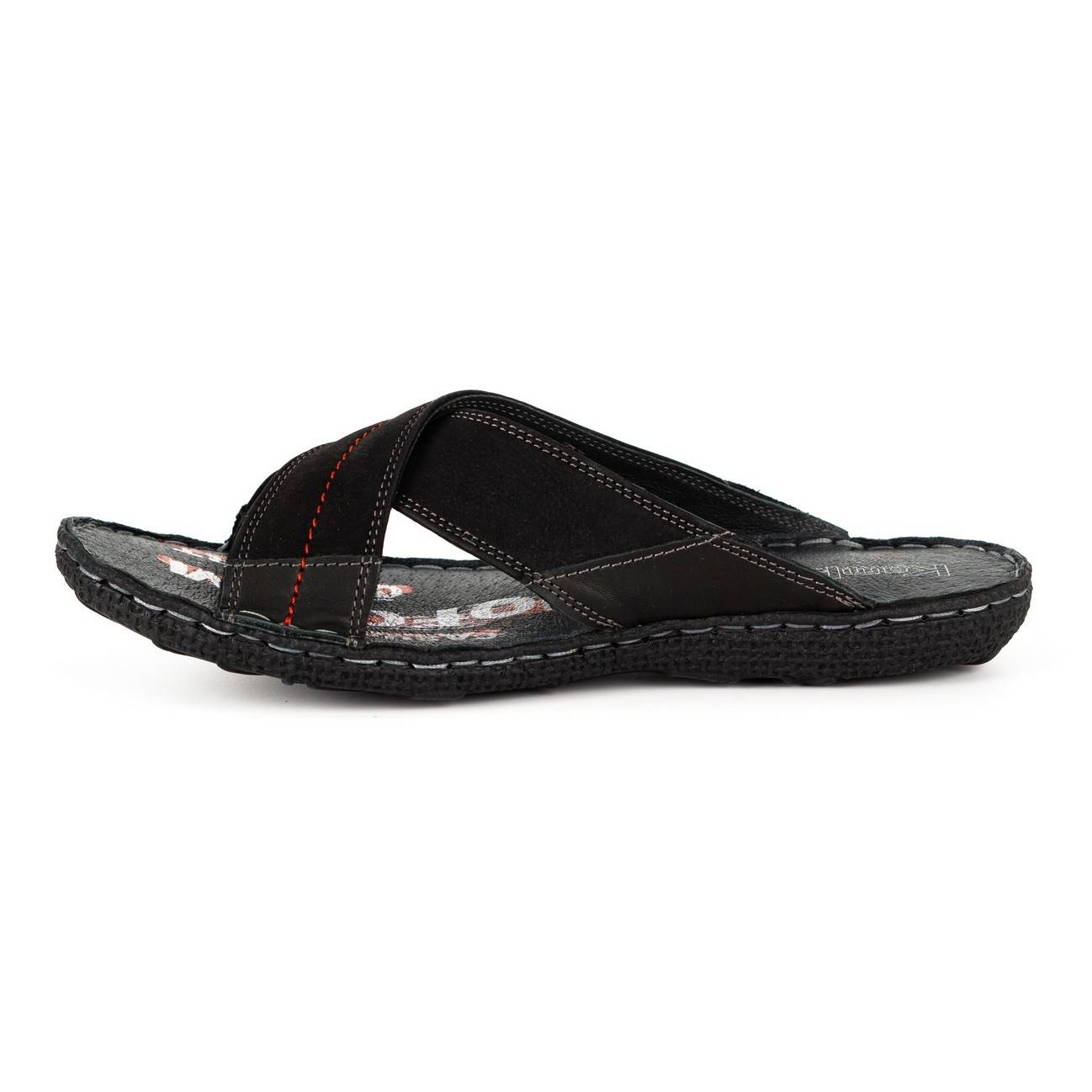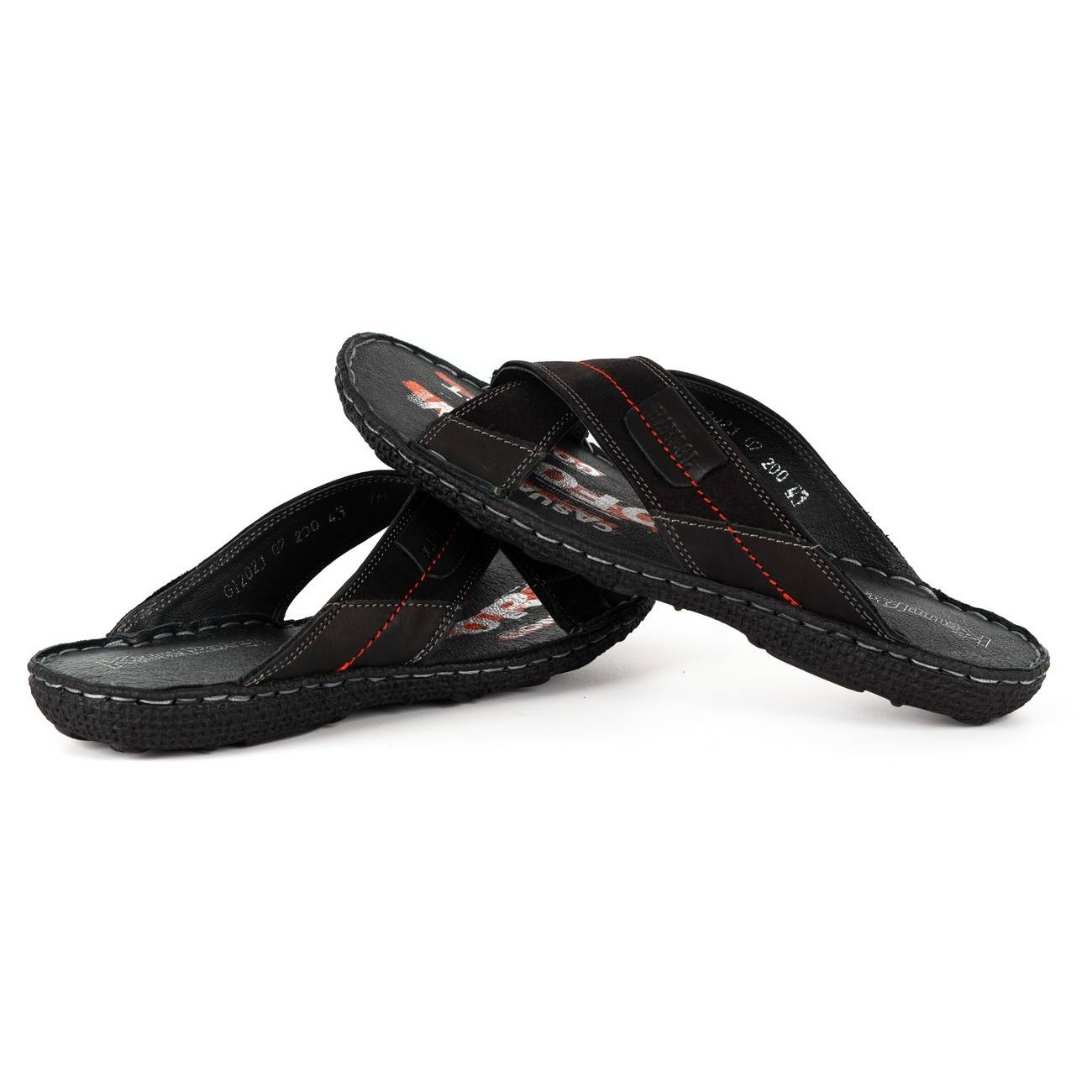 Colecția „Fashionable Shoes”, ținând cont de ultimele tendințe, în cazul șlapilor bărbați din piele 200/3, pune accent pe minimalism, care este mereu la modă și se potrivește multor stiluri. Culoarea neagră pur face șlapii universali și pot fi combinate cu ușurință cu îmbrăcăminte într-o varietate de culori și stiluri.