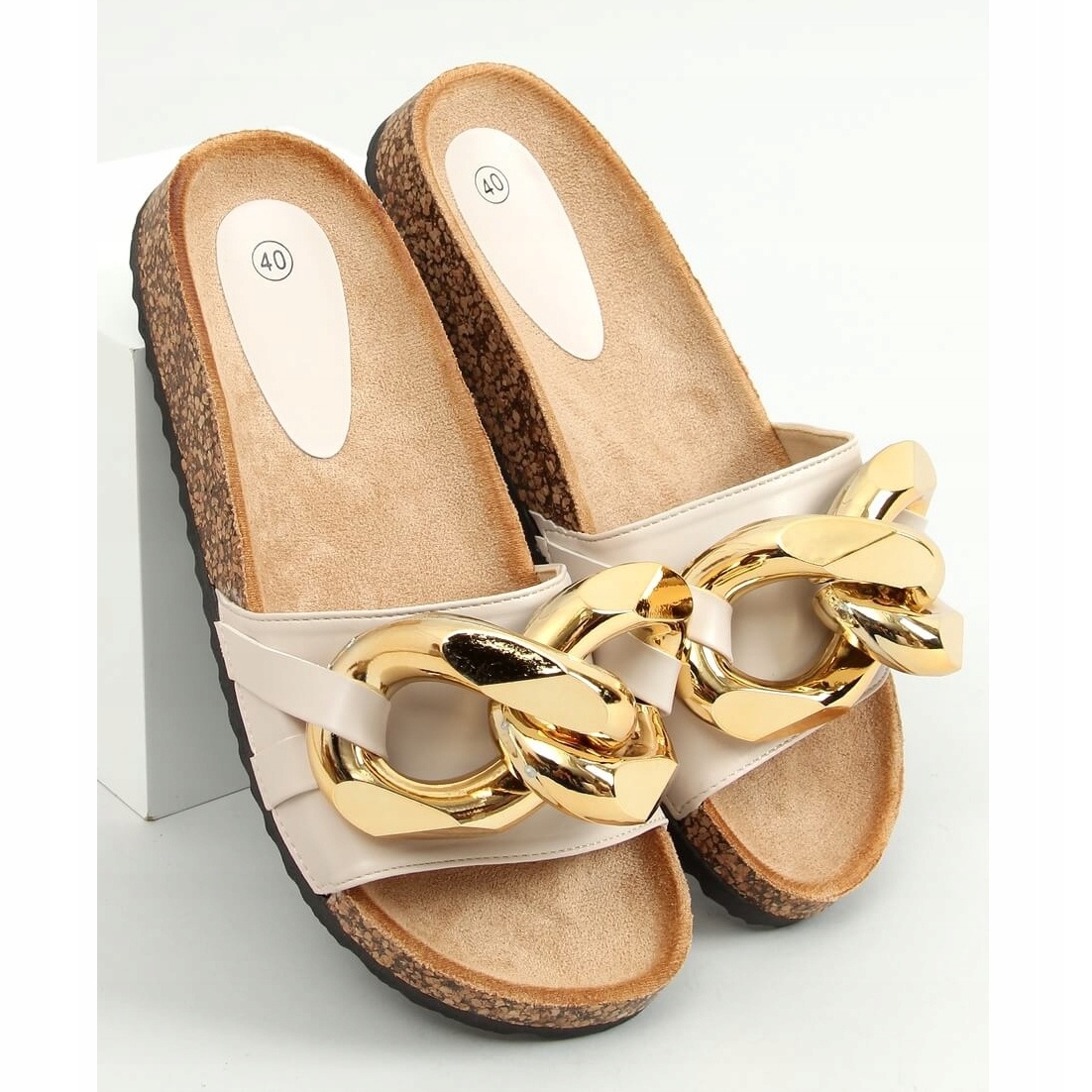 Inna marka Papuci bej cu lanț gros CK201 Bej