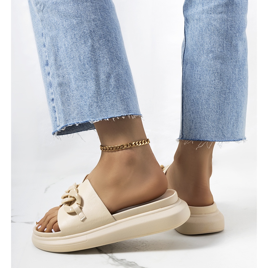 Talpa lor înaltă de cauciuc nu numai că asigură confort, dar arată și excepțional de elegant, ceea ce face ca șlapii Levy să se potrivească perfect cu diverse ținute de vară. Un avantaj suplimentar este lanțul la modă care decorează partea superioară, care le conferă un caracter unic.